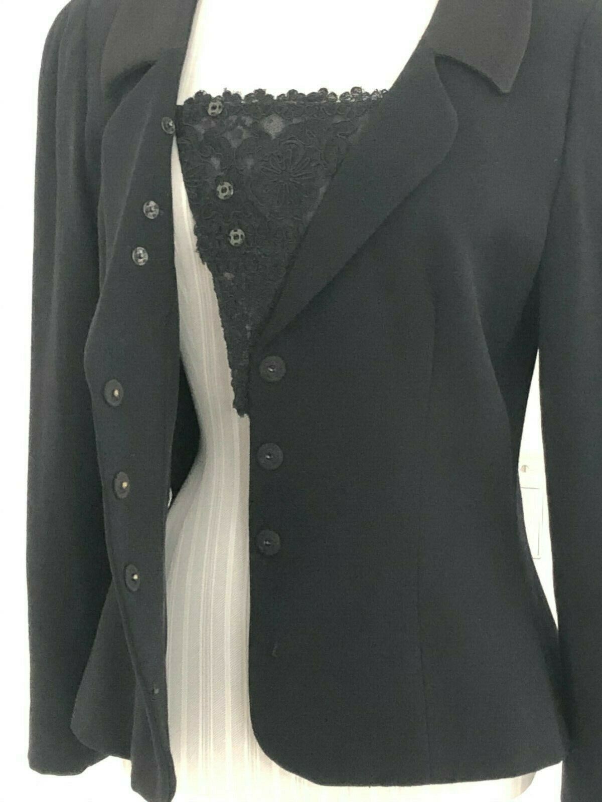 GIORGIO ARMANI Black Wool w/ Lace Insert Snap Front Blazer/Jacket Sz US 10 $2300