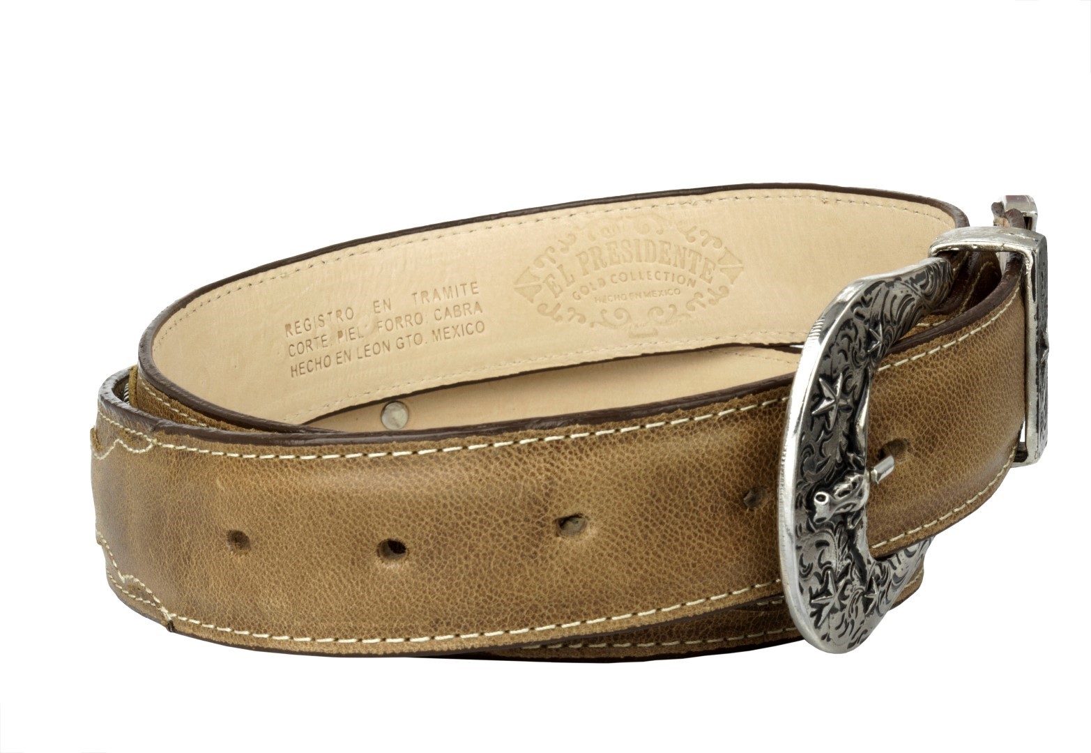 Description: El Presidente's handmade genuine leather belt has become a true essential to every man's wardrobe over the years. This belt features a stylish pattern; a perfect match for any man seeking a luxurious style belt. Handmade in Leon Mexico.