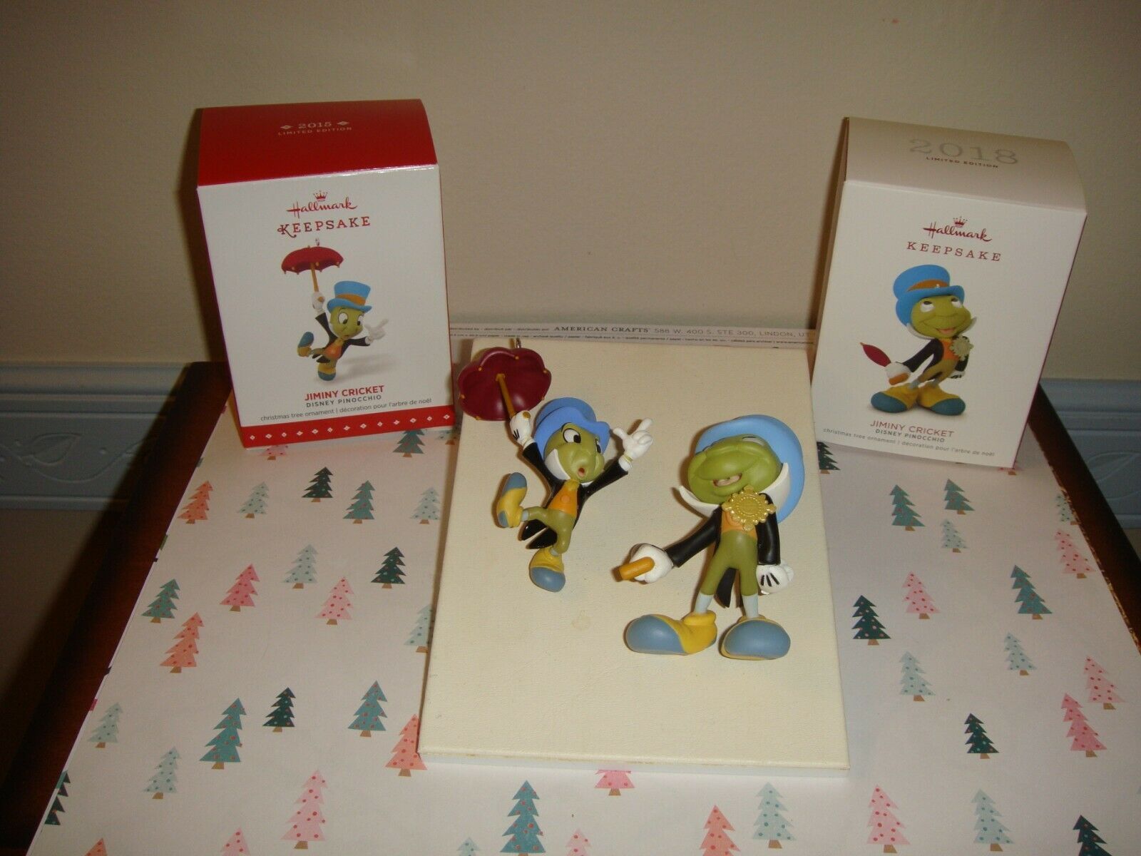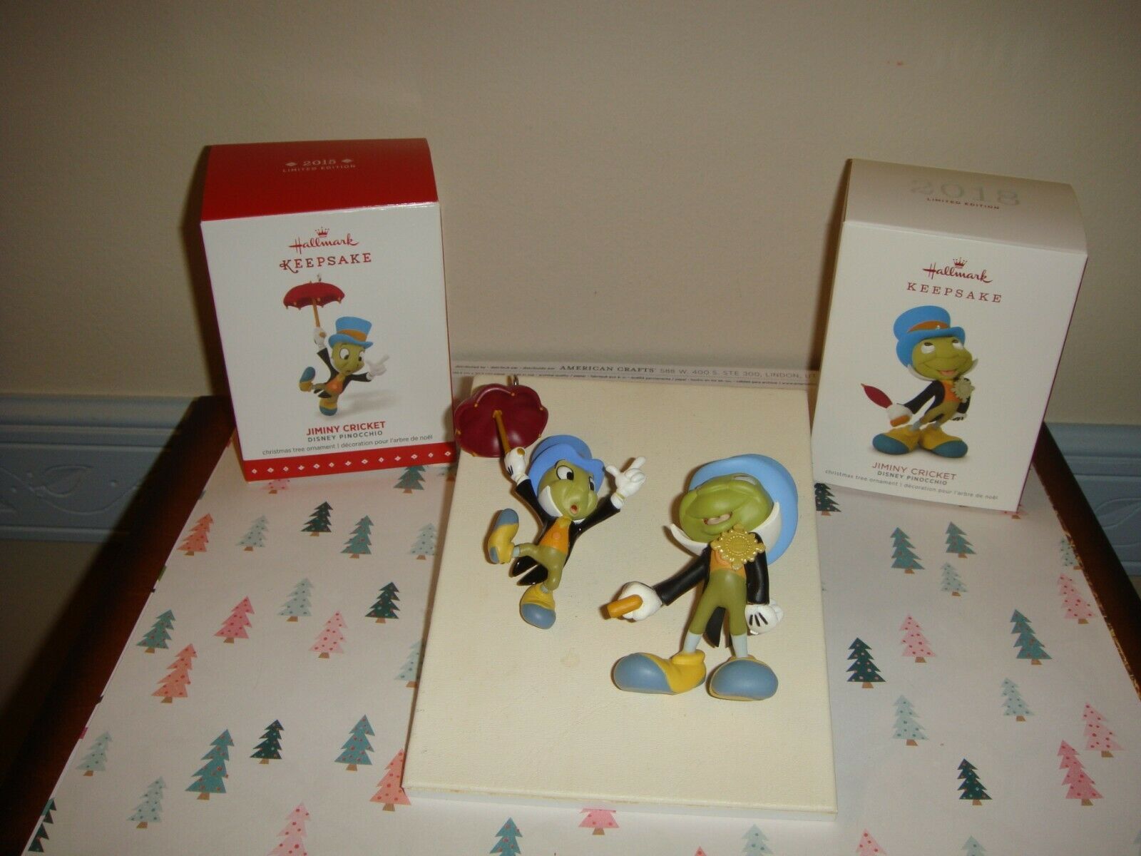 Hallmark Disney Pinocchio Limited Edition 2015 And 2019 Jimny Cricket Ornaments