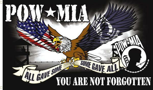 POW MIA NOT FORGOTTEN 3 X 5 MILITARY FLAG wall banner #583 biker POWMIA eagle