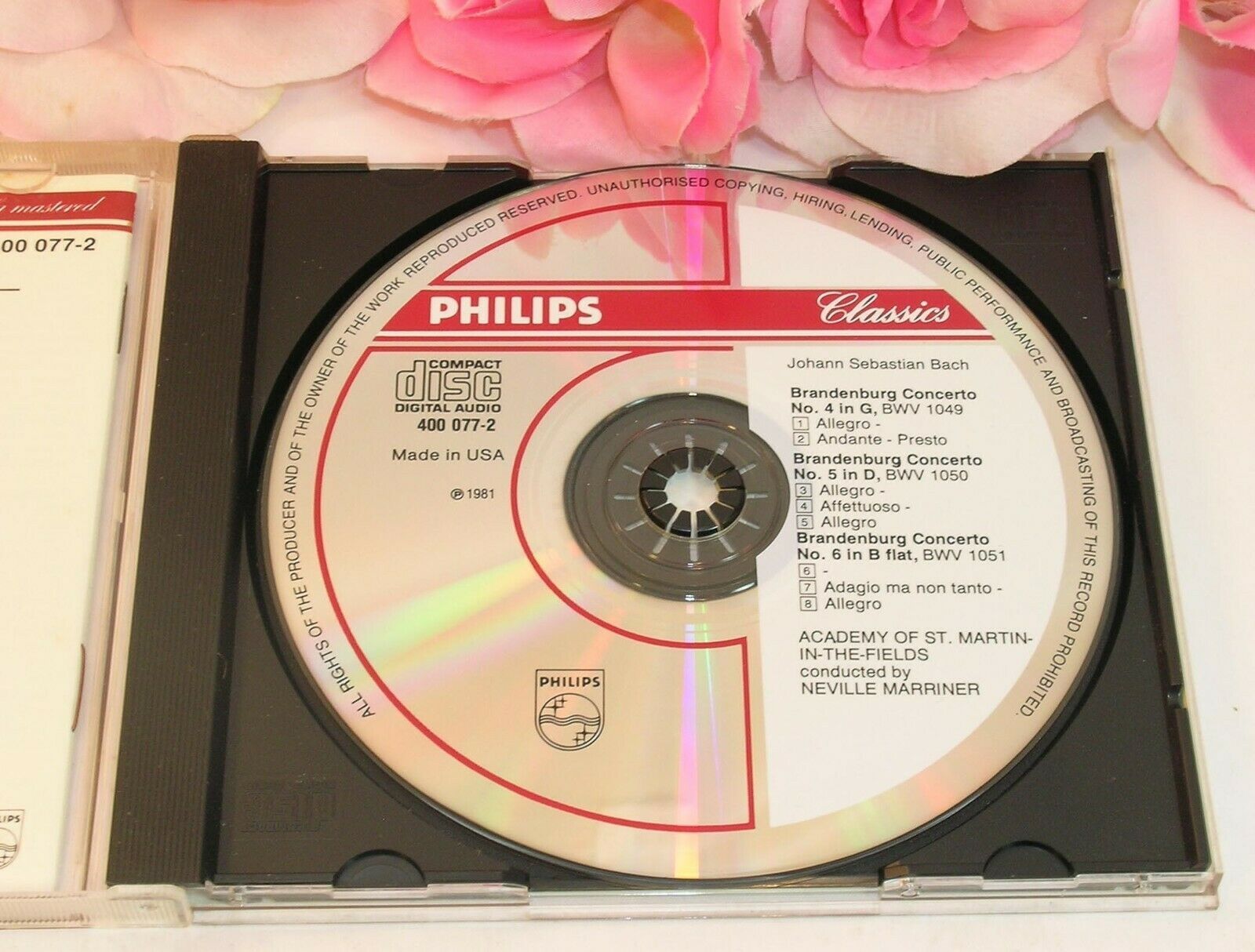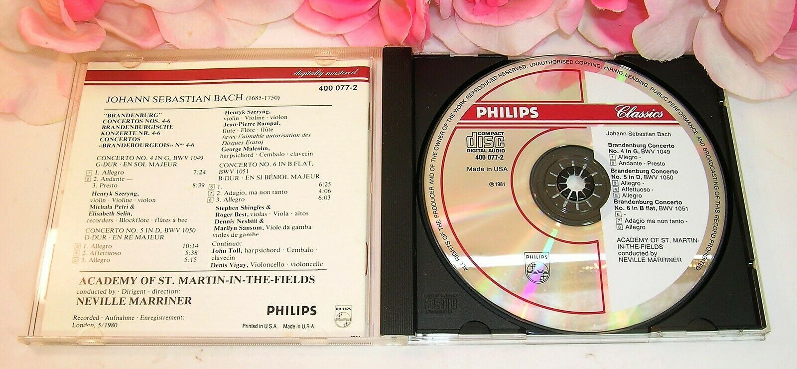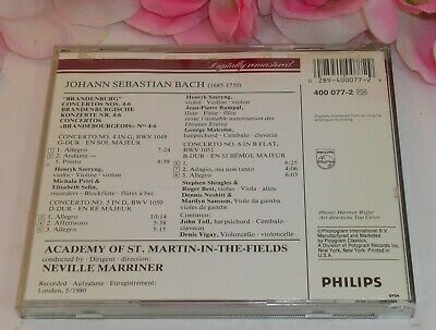 You are buying a used CD of Johann Sebastian Bach performed by Various artists Academy of St. Martin-In-The-Field the album is called "The Brandenburg Concertos 4,5 6" This is a used CD from Phillips Records. The CD has 10 tracks. The album was produced in 1990. The cd plays, there are no visible scratches. The cd is in the original case with inserts. Please look closely at the pictures for item condition.