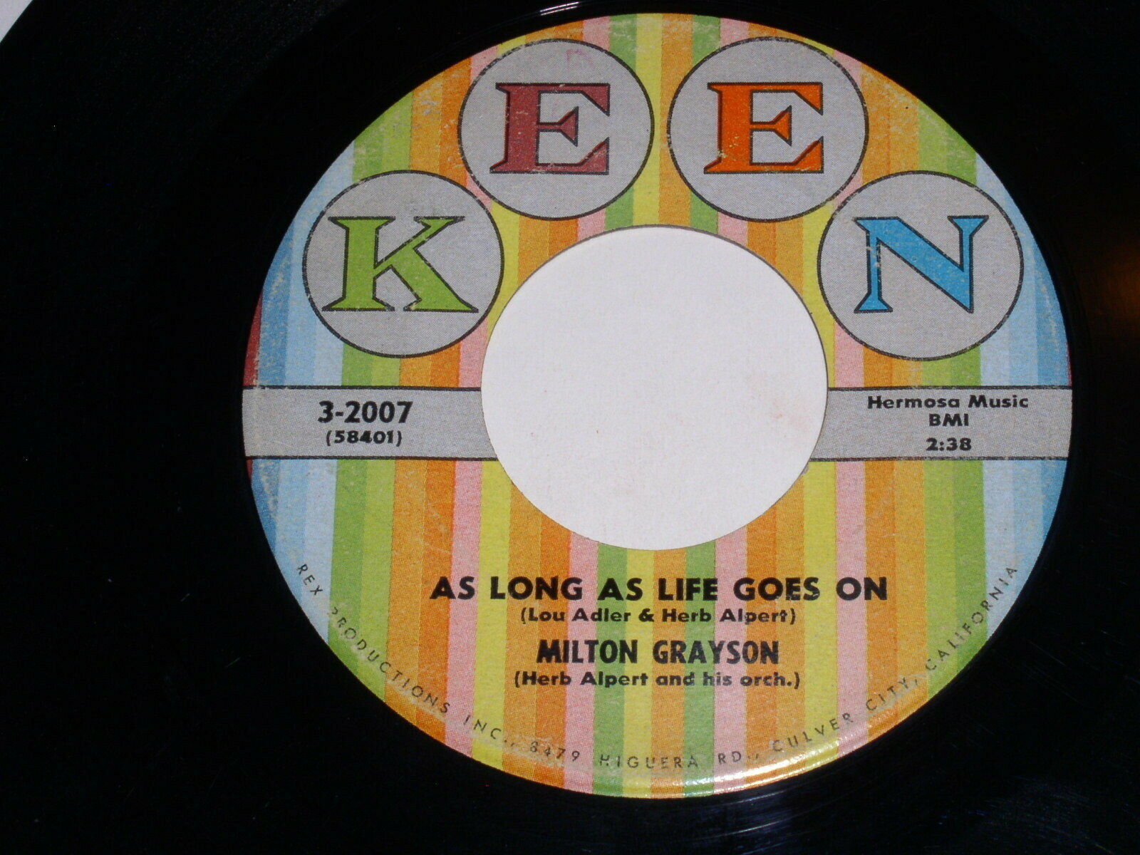 Milton Grayson As Long As Life Goes On Beggar Boy 45 Rpm Record Keen Label