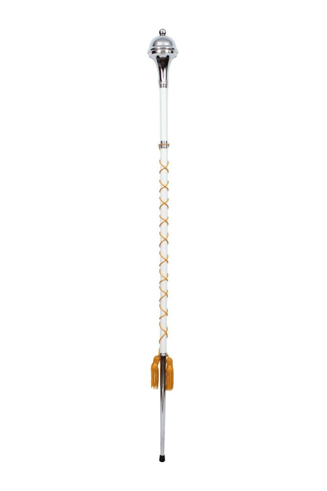Drum Major Mace Ball Top White Color Beech Wood Shaft Gold Silk Cord