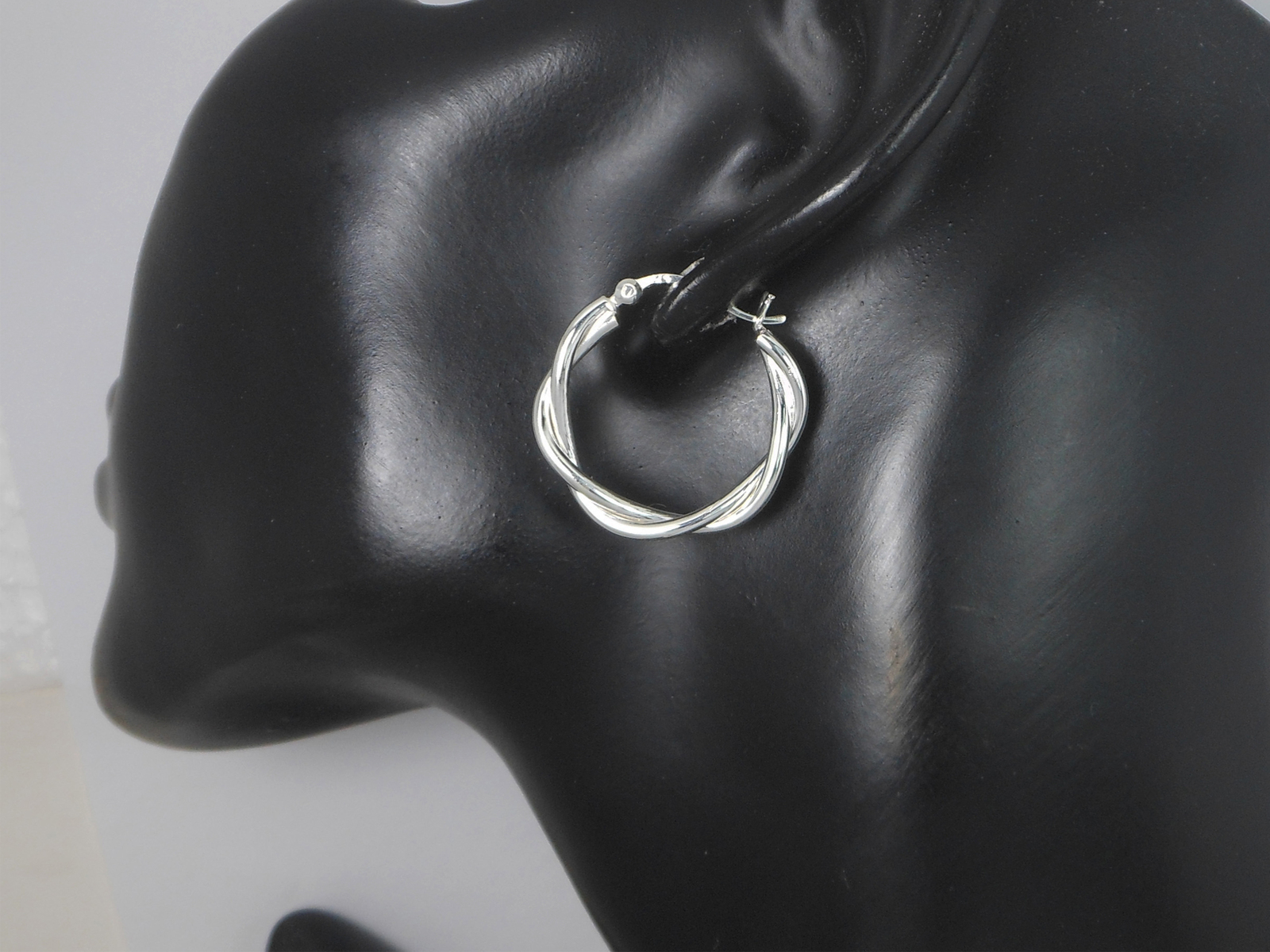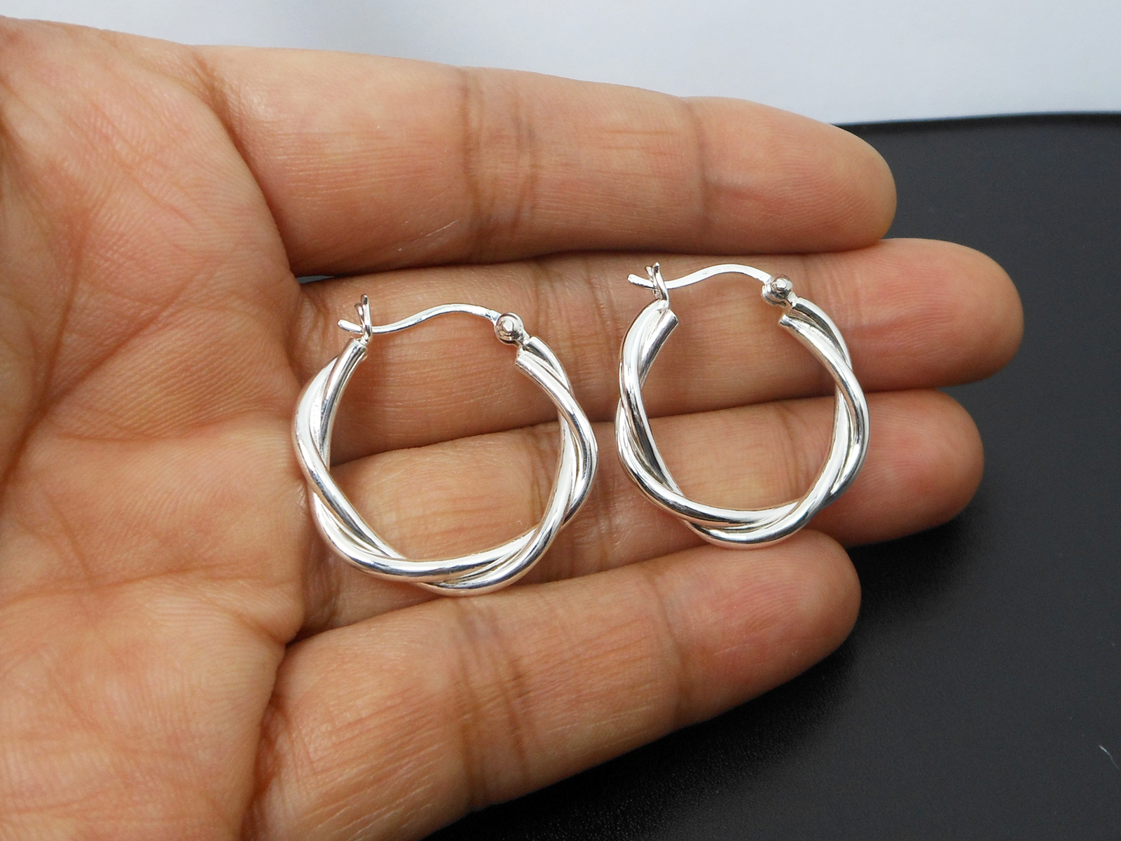 The classic twist silver hoop earrings are 925 sterling silver with handmade round hoop earrings designed and made by Sup Silver. They are so lovely womens earrings to wear daily.