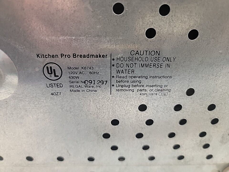 Regal Kitchen Pro Breadmaker Model K6743 |