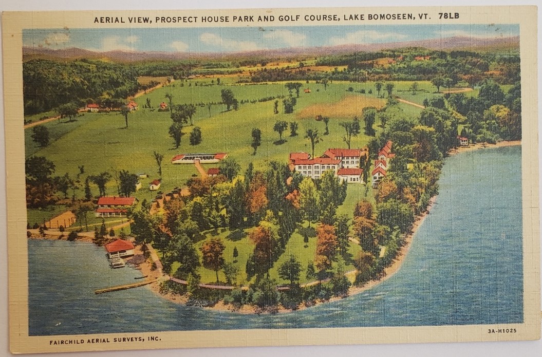 Vintage Postcard Aerial View Prospect House Park Golf Course Lake Bomoseen VT