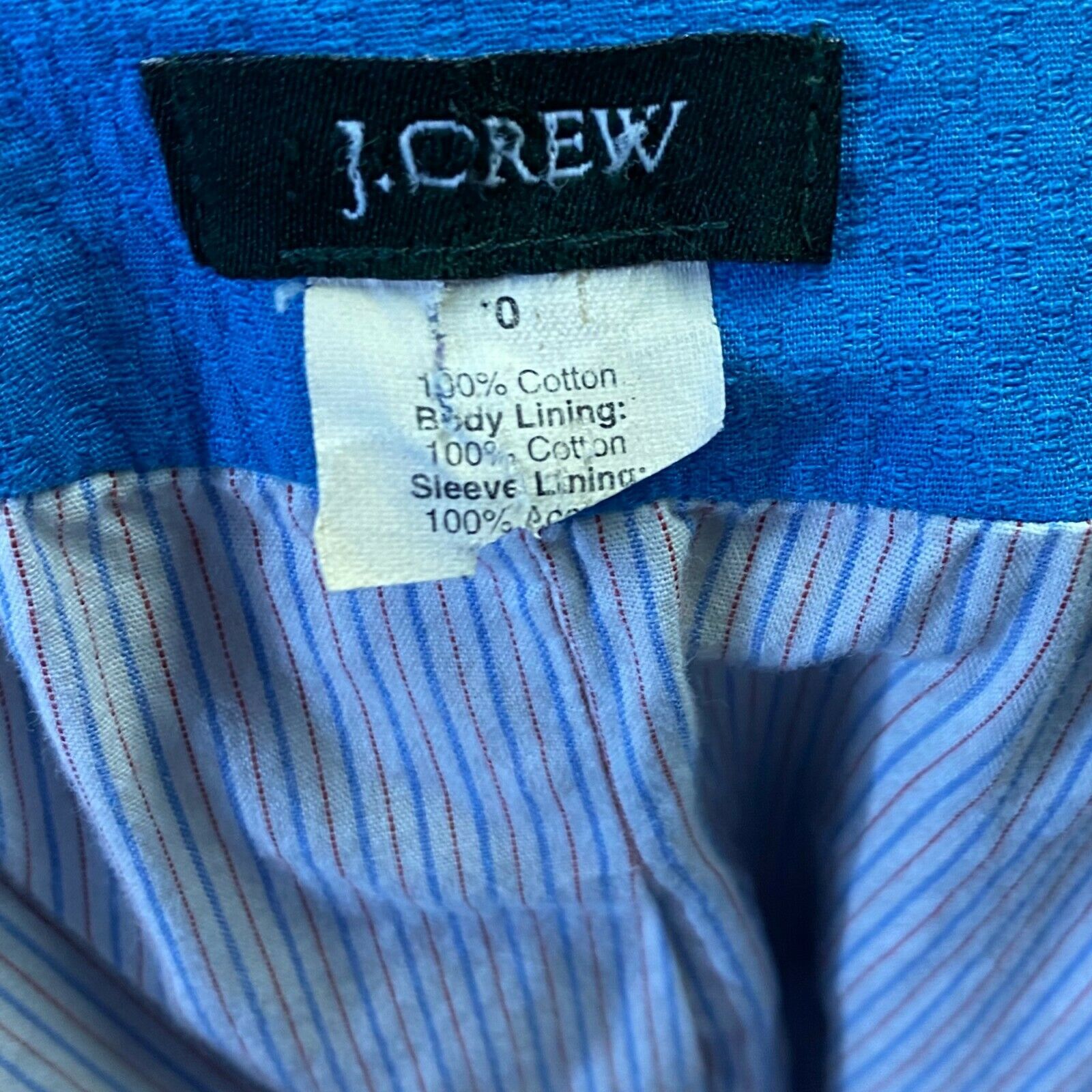 J Crew Blazer Size 0 Blue Asymmetrical Button Career Suit Jacket Cotton Womens