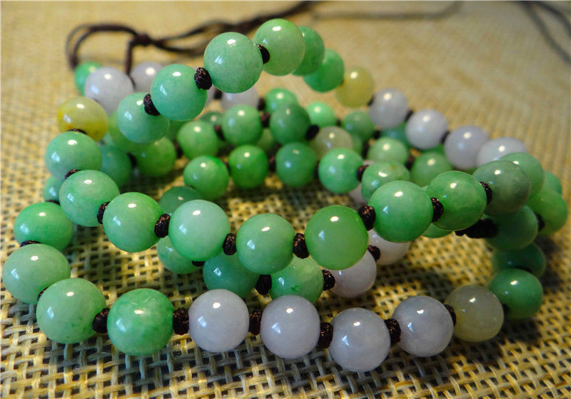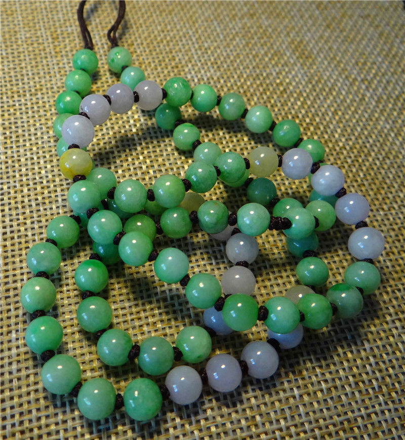 Certified 3 Color Natural Grade A Jade Jadeite 82 Beads Necklace 23"inches Long