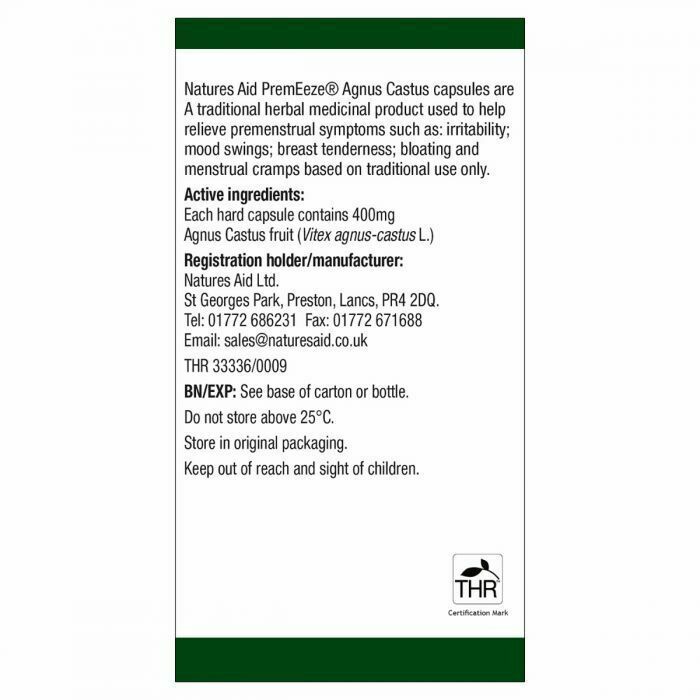 Each PremEeze hard capsule contains 400mg of Agnus Castus Fruit (Vitex agnus-castus L.).