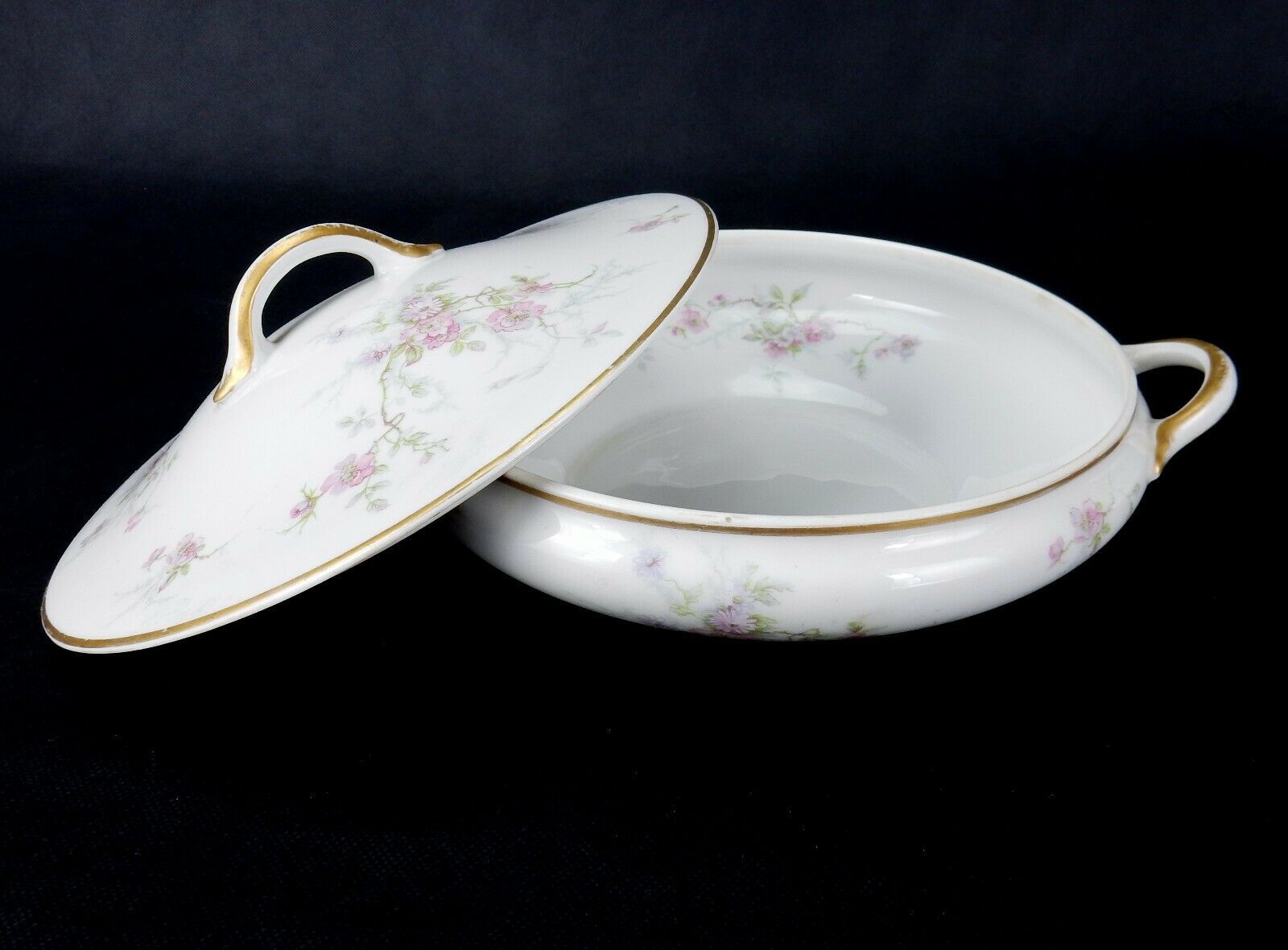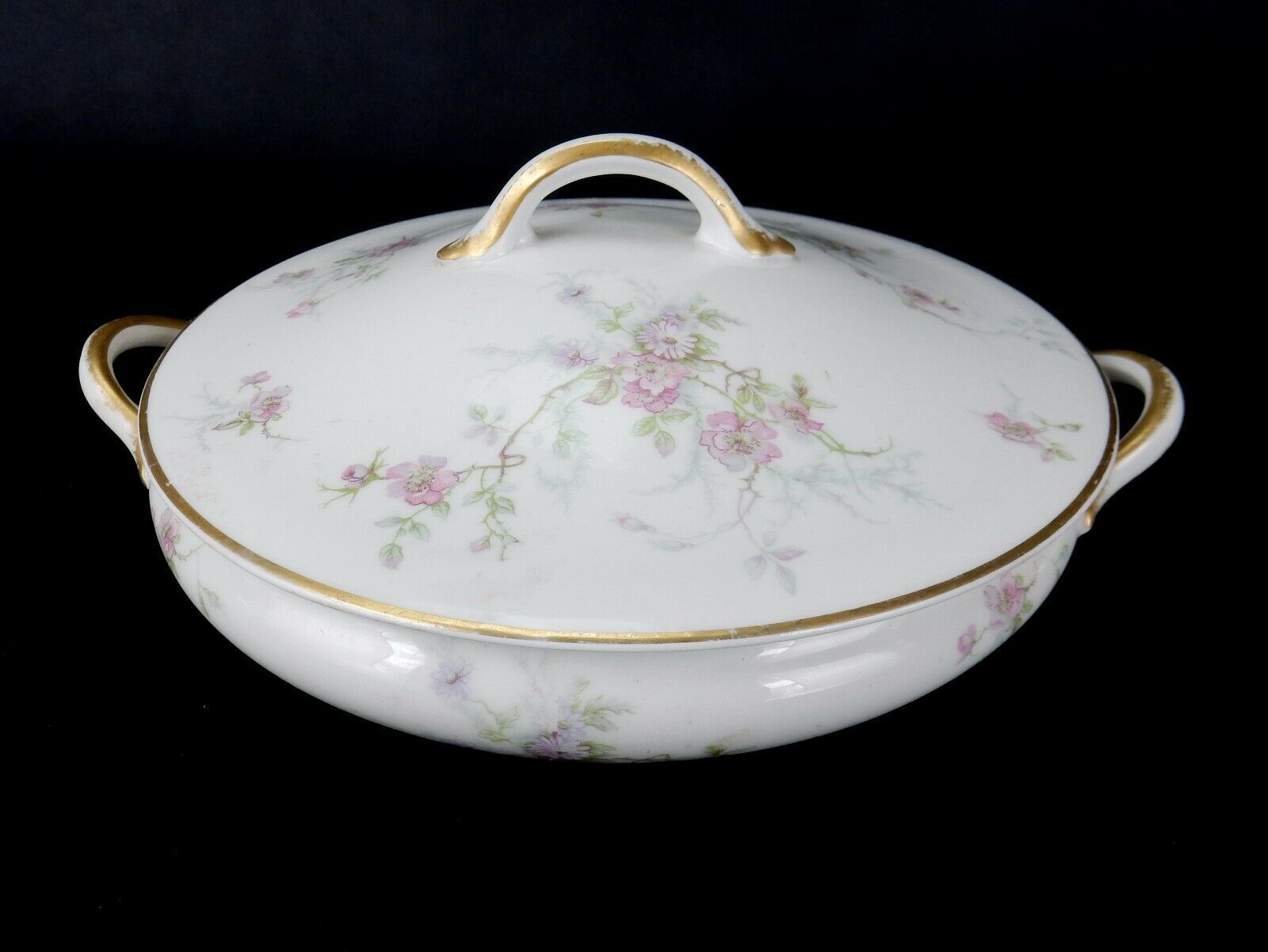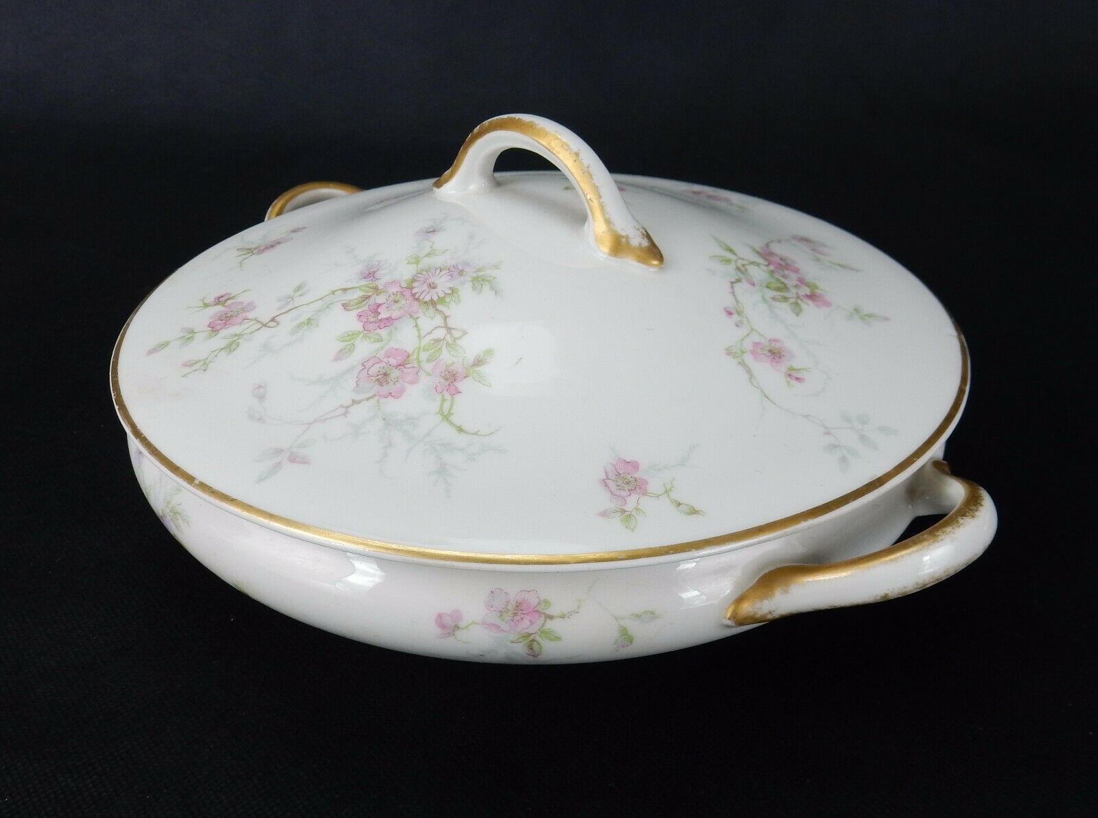 CH Field Haviland GDA Limoges,Round Serving Bowl w/lid Pink Roses Gold Trim