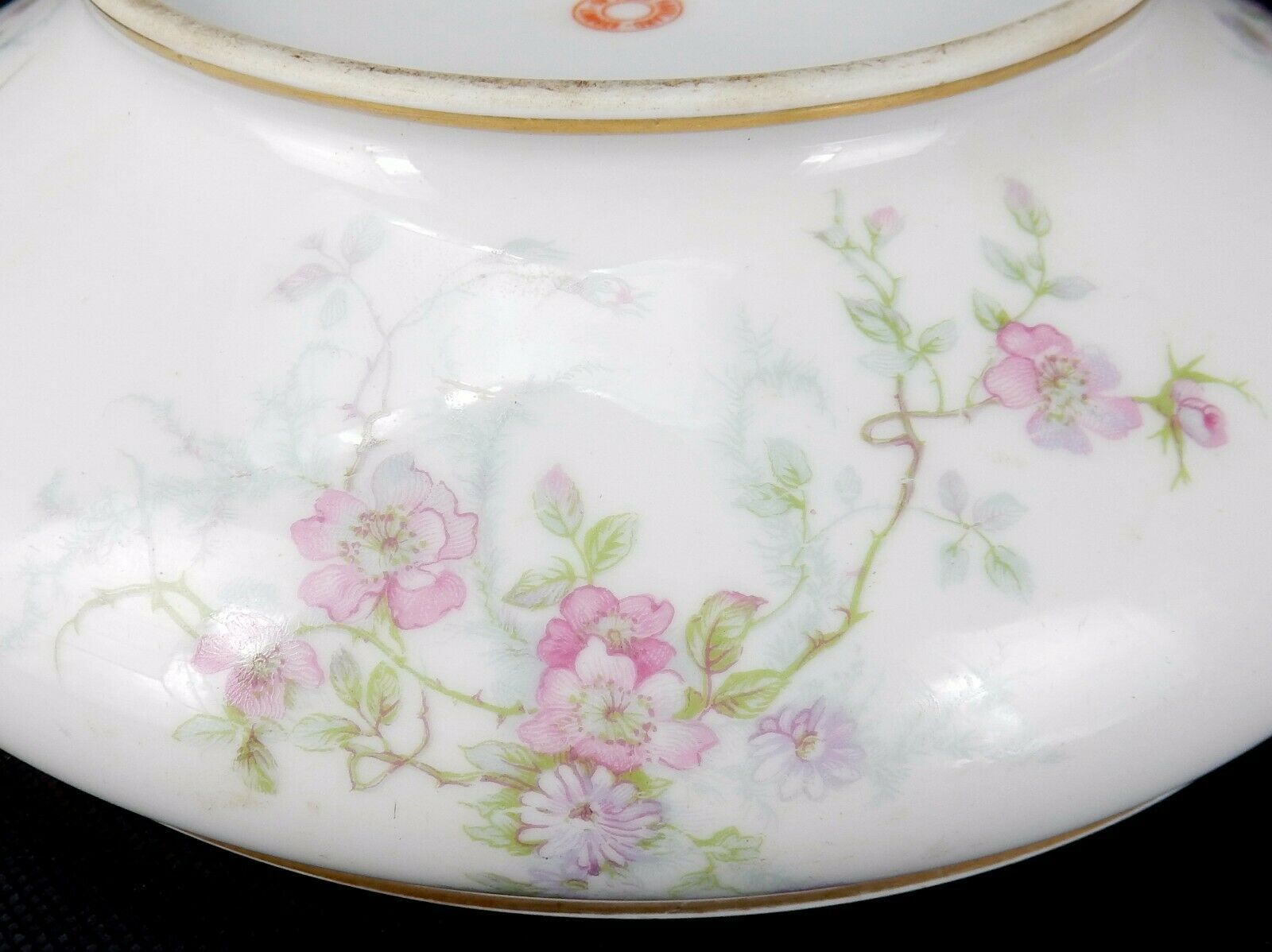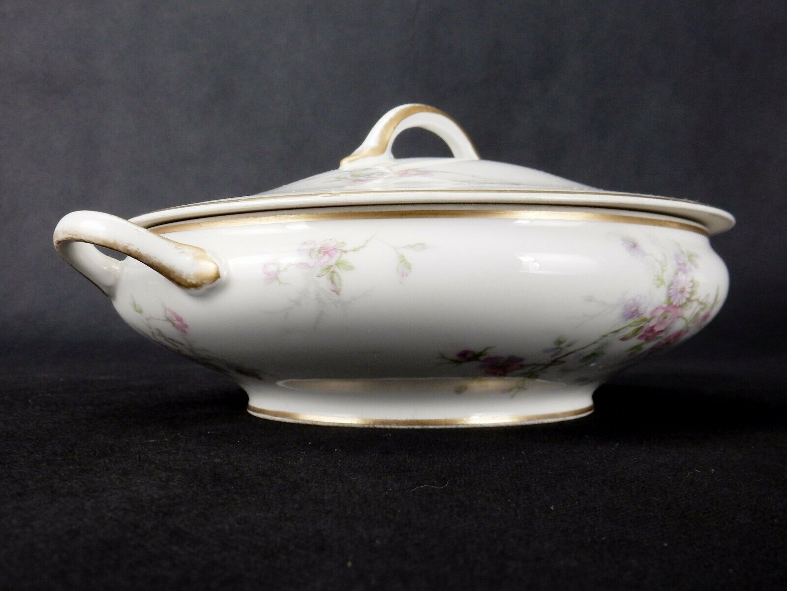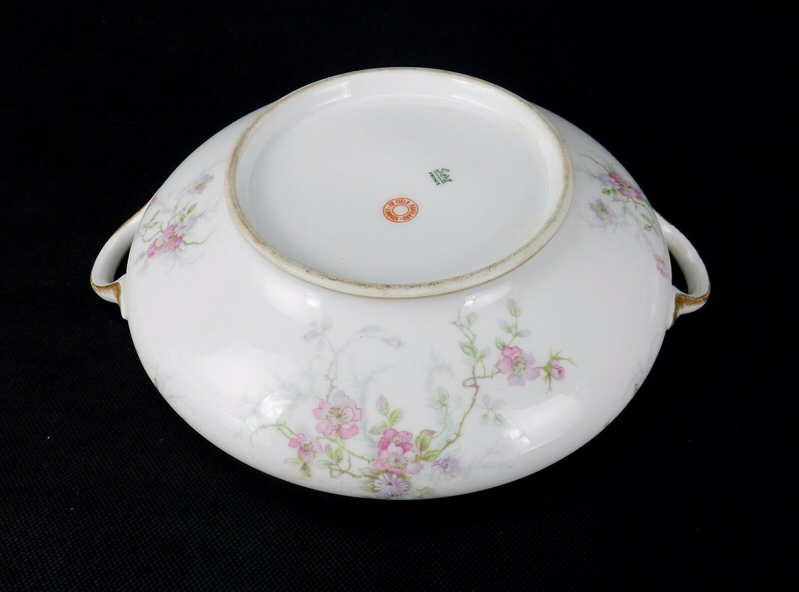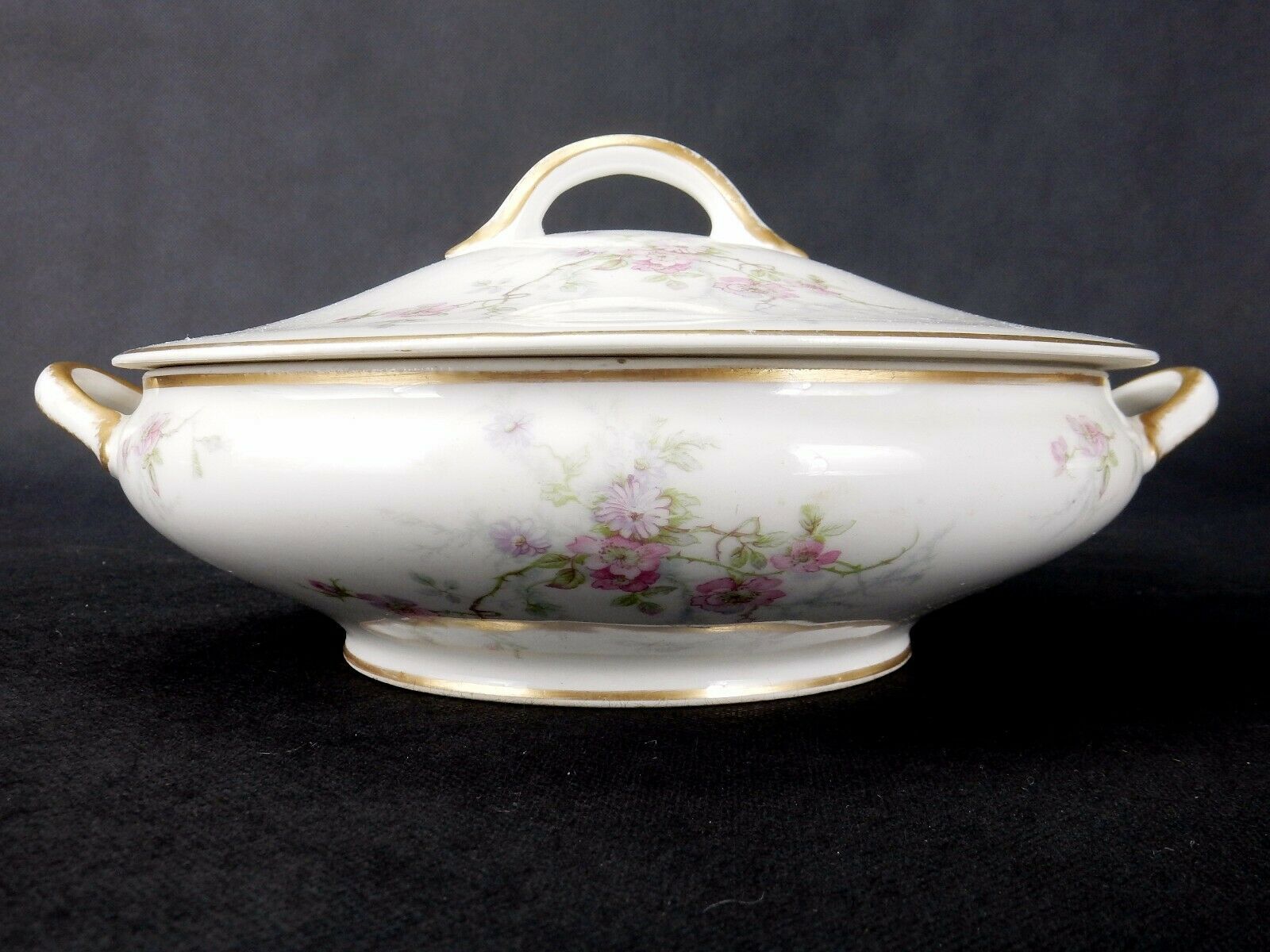 CH Field Haviland GDA Limoges,Round Serving Bowl w/lid Pink Roses Gold Trim