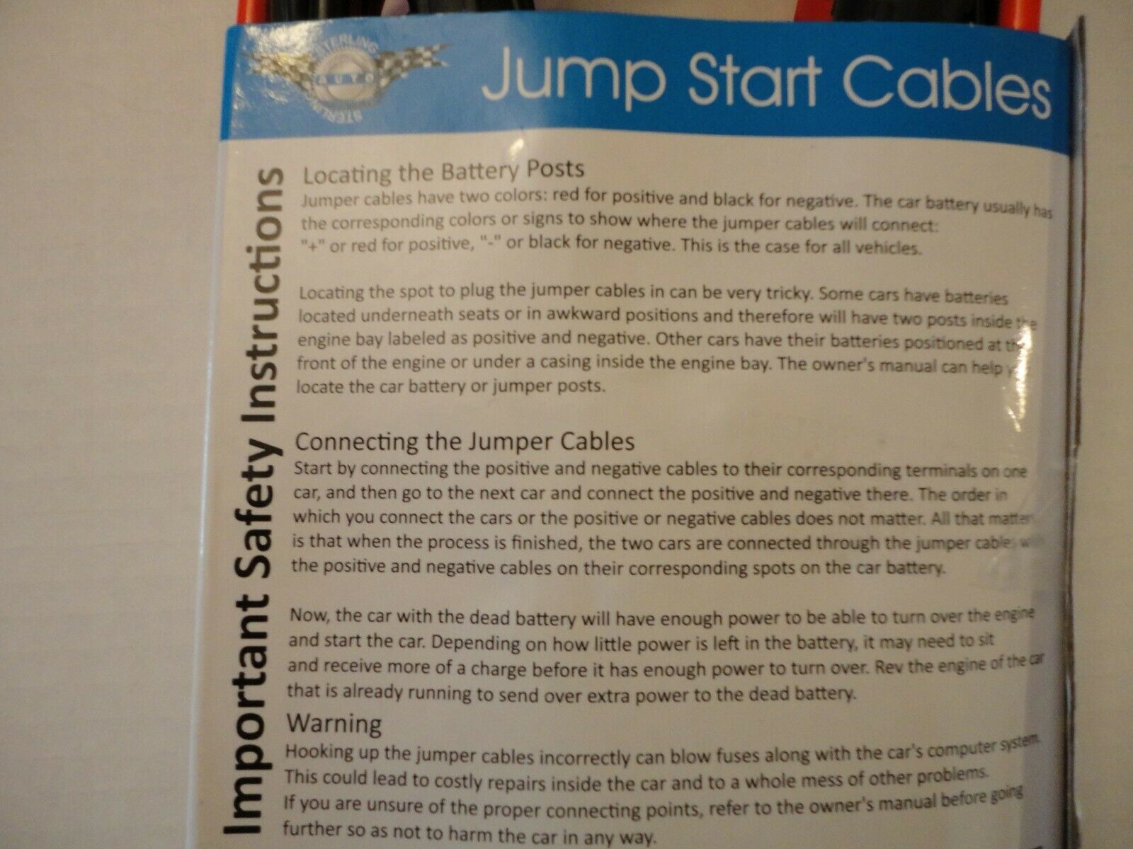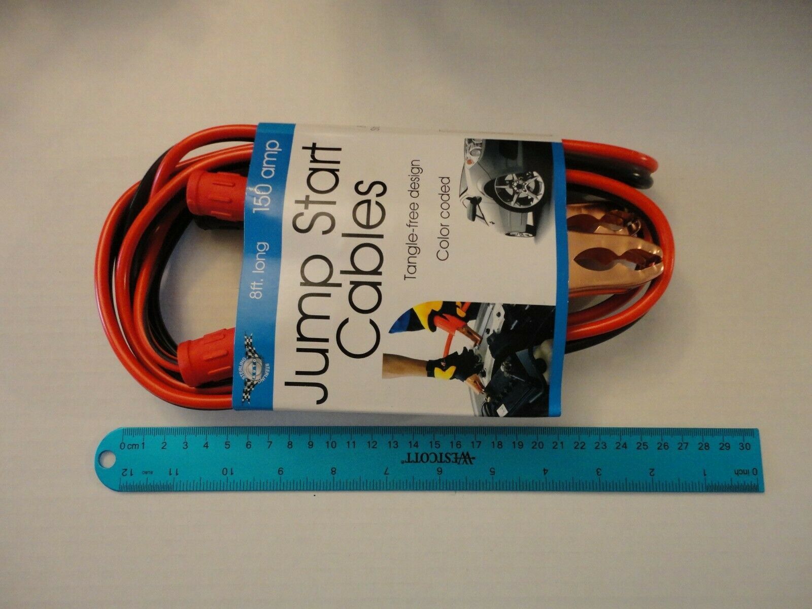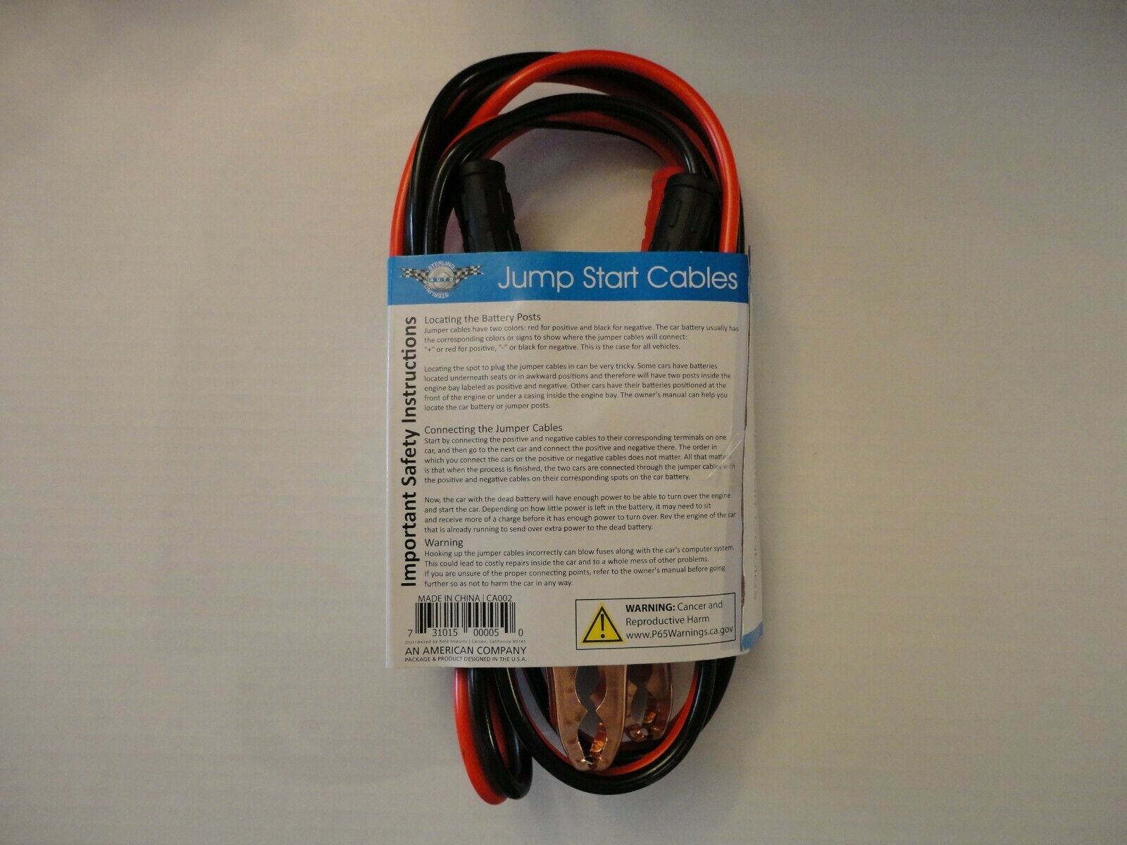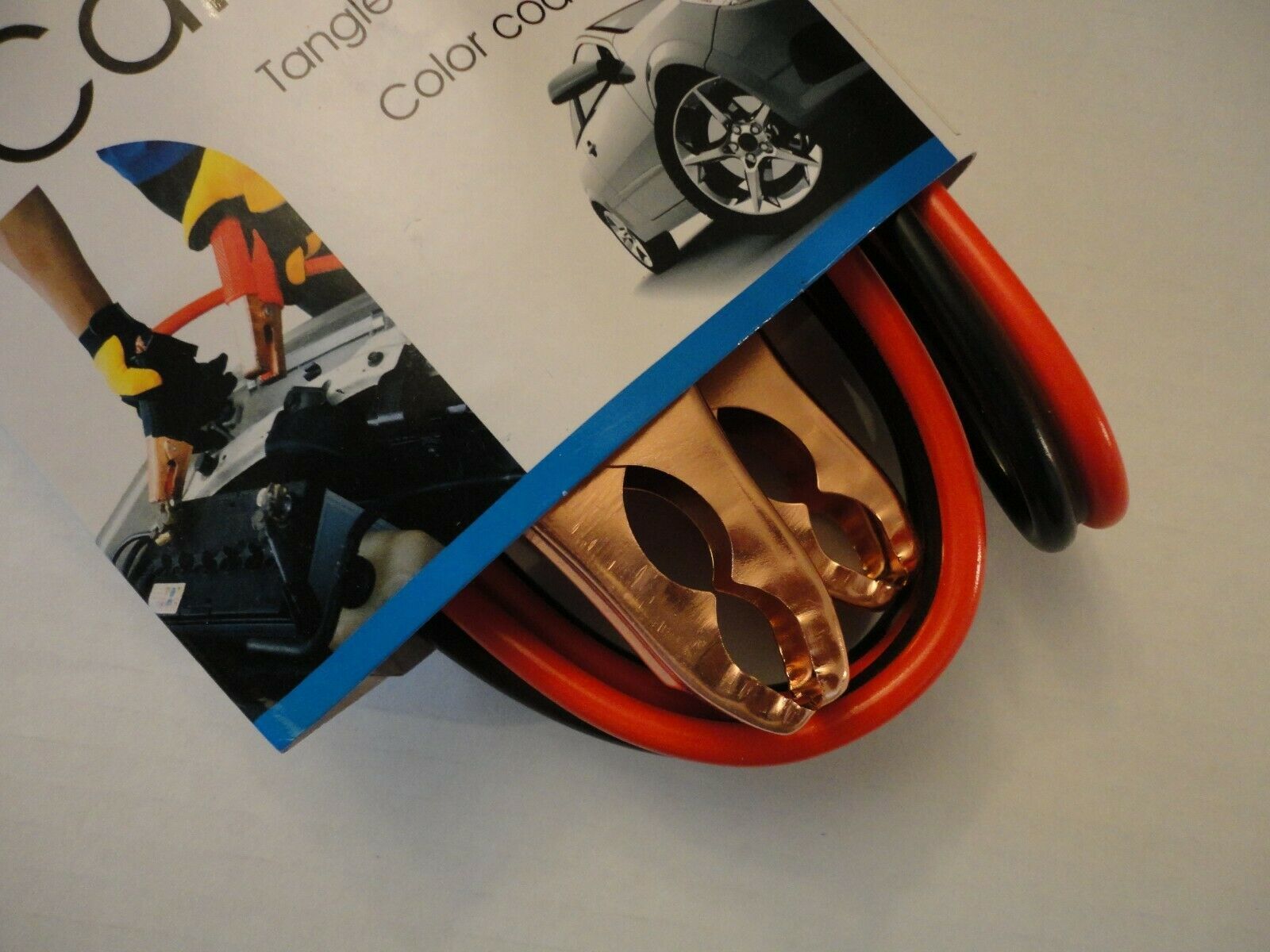 An automobile must-have, these Jump Start Cables feature copper color coded clamps and are designed to not tangle. Includes an illustrated guide and important safety instructions for proper use on the package. Measures approximately 8 feet long.
