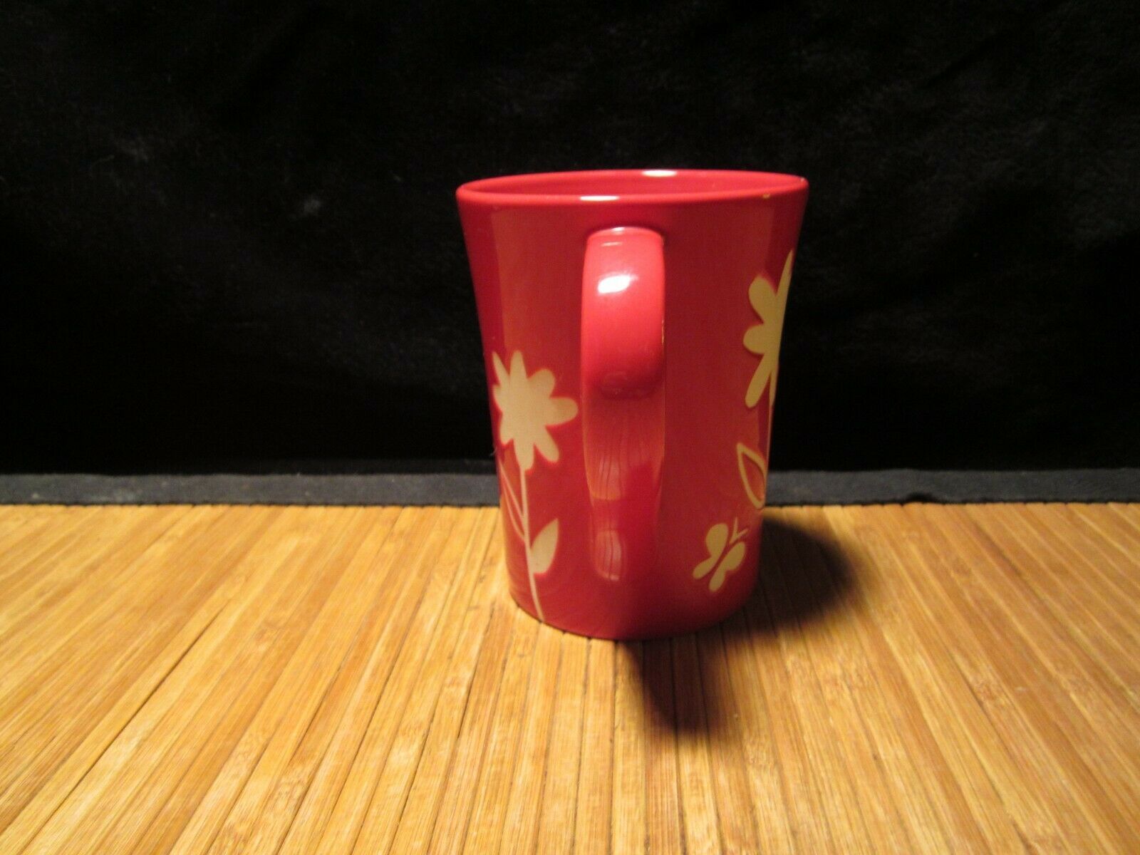 2007 Starbucks Red White Embossed Flowers Butterflies Coffee Mug Tea Cup 12 oz