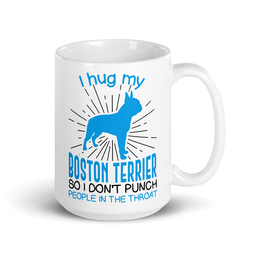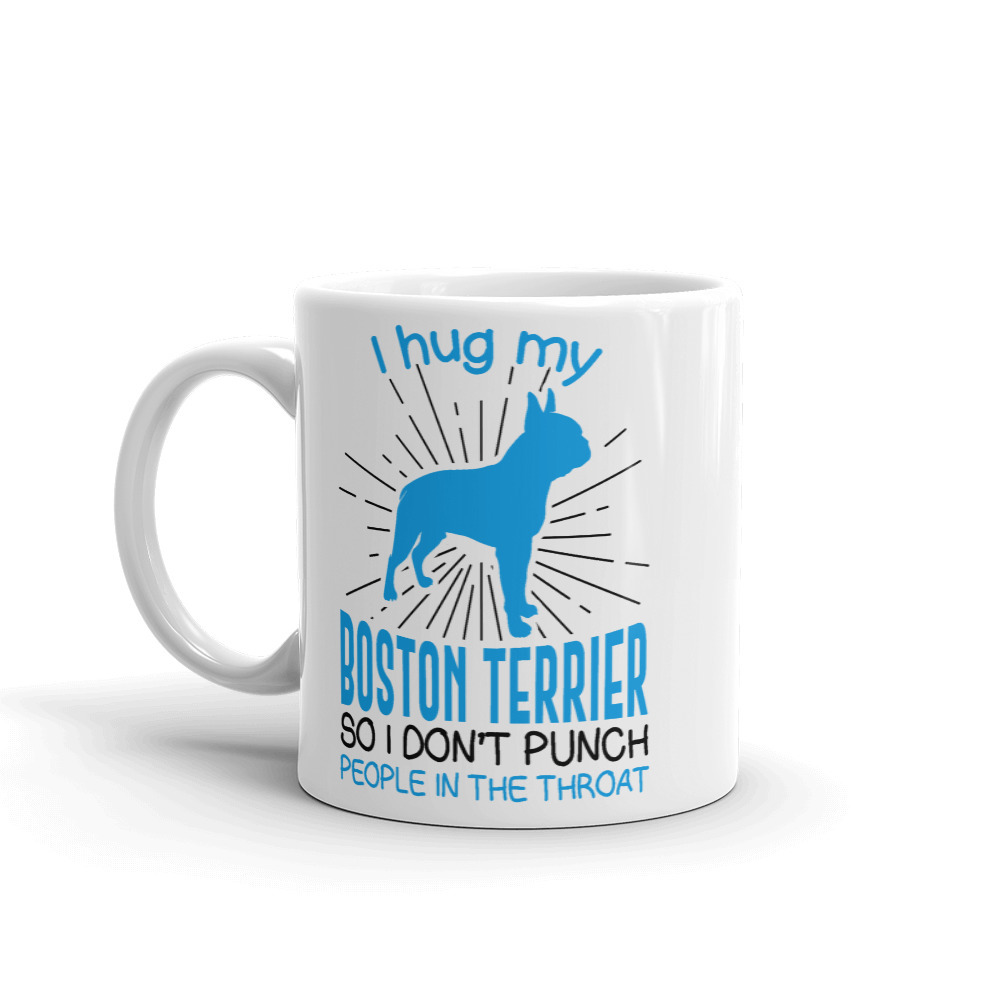 I hug my Boston Terrier So I Don't Punch People In The Throat Mug