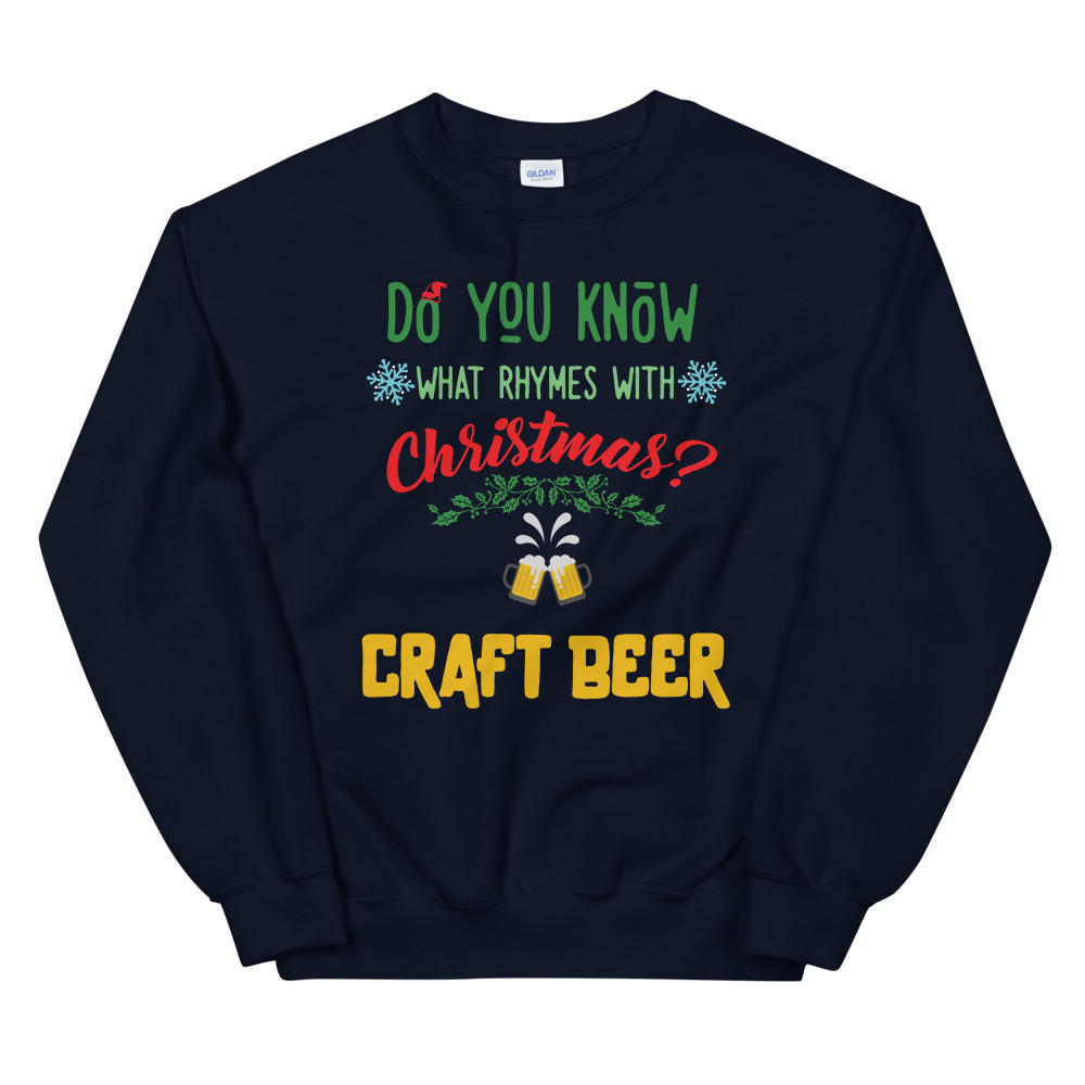 Know What Ryhmes With Christmas? Craft Beer Xmas Drinking Shirt Unisex Sweatshir