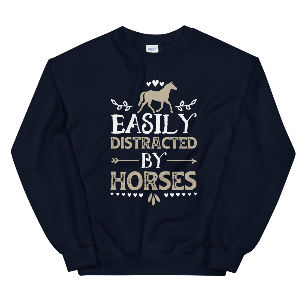 Easily Distracted By Horses Funny Horse Lover Gift Shirt Unisex Sweatshirt