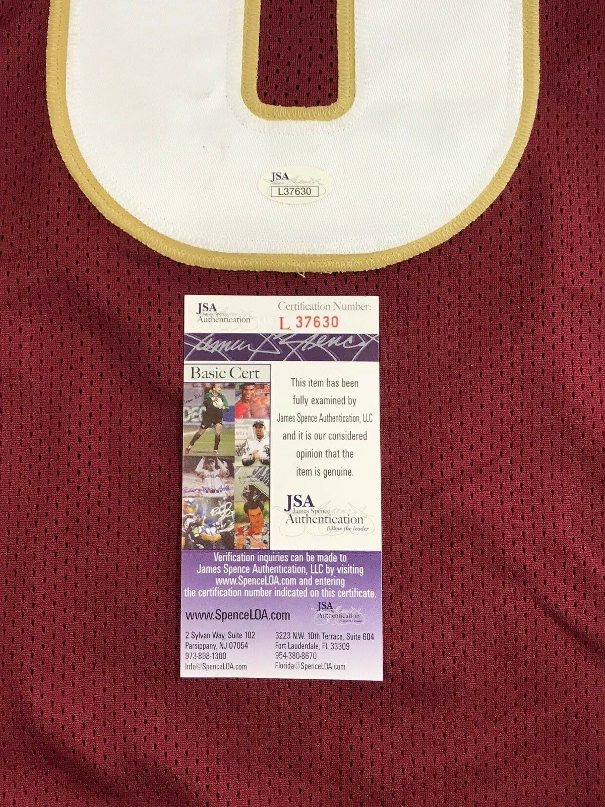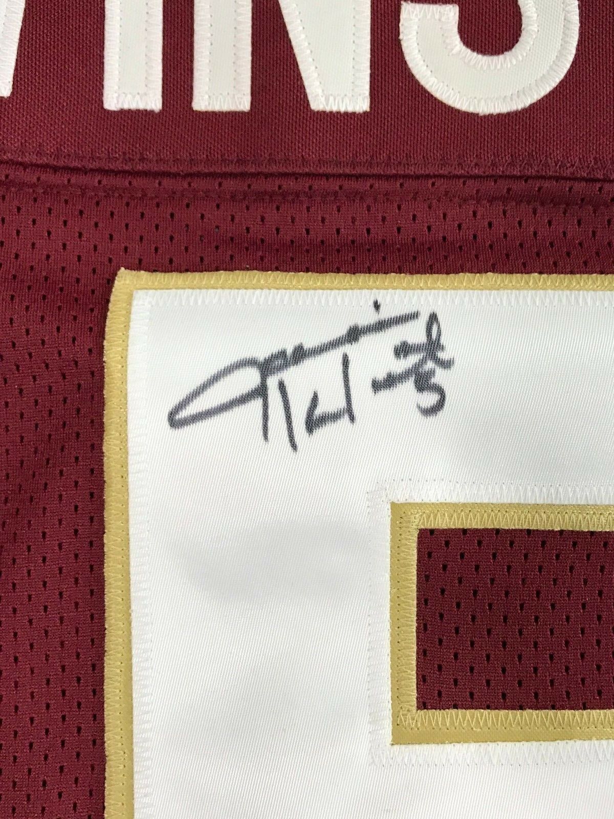 LOOKING FOR THE NEXT BIG THING TO ADD TO YOUR MEMORABILIA COLLECTION? WELL THIS IS IT! JAIMES WINSTON SIGNED FLORIDA STATE UNIVERSITY JERSEY!! THIS JERSEY IS SIGNED BY WINSTON WITH A BLACK MARKER AND IS A CUSTOM MADE JERSEY SIZE XL MADE FOR HIM TO SPECIFICALLY SIGN amp; FOR YOU TO FRAME. CONTACT US REGARDING CUSTOM FRAMING THIS ITEM FOR YOU BEFORE SHIPPING OUT AS WE OFFER SOME OF THE HIGHEST QUALITY FRAMING IN THE ENTIRE MEMORABILIA INDUSTRY!! THIS IS A MUST HAVE FOR ALL WINSTON, BUCS AND FSU FANS' MANCAVES OFFICE amp; GAME ROOMS!! This photo has been certified authentic by one of the most reputable and recognized authenticators in the business today, JSA. This team signed photo includes the JSA tamper proof hologram and Certificate of Authenticity guaranteeing this piece is the real thing. You can verify this Certificate # on their online database available 24/7/365.