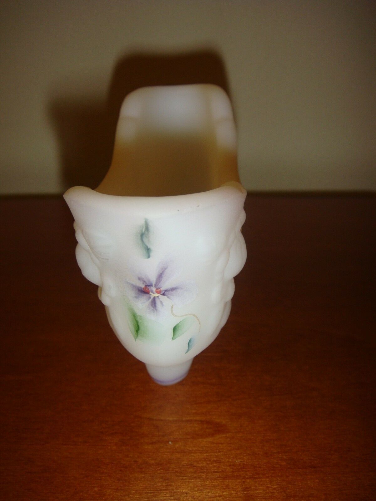 Fenton White Satin Hand Painted Rose Floral Shoe Slipper