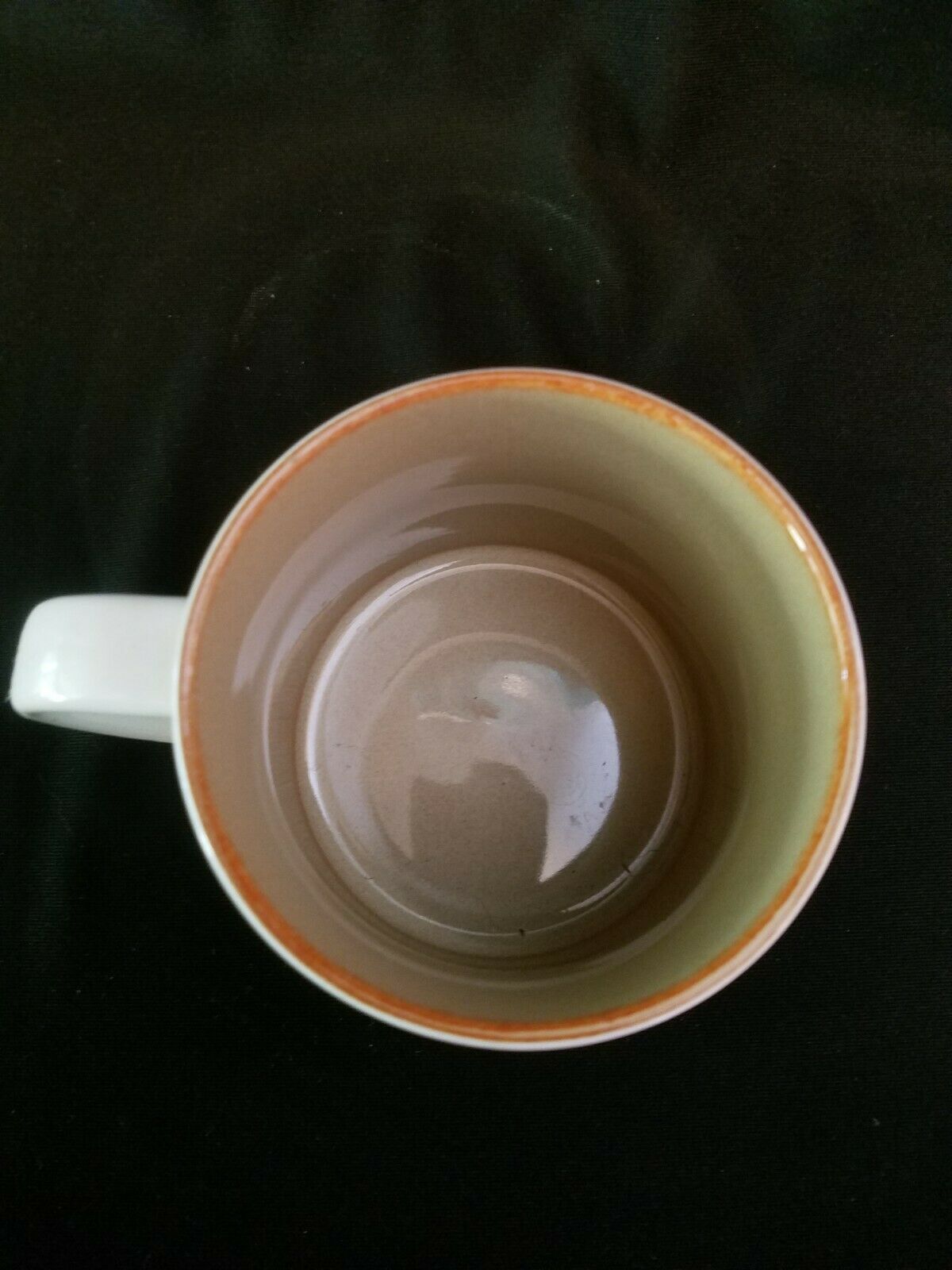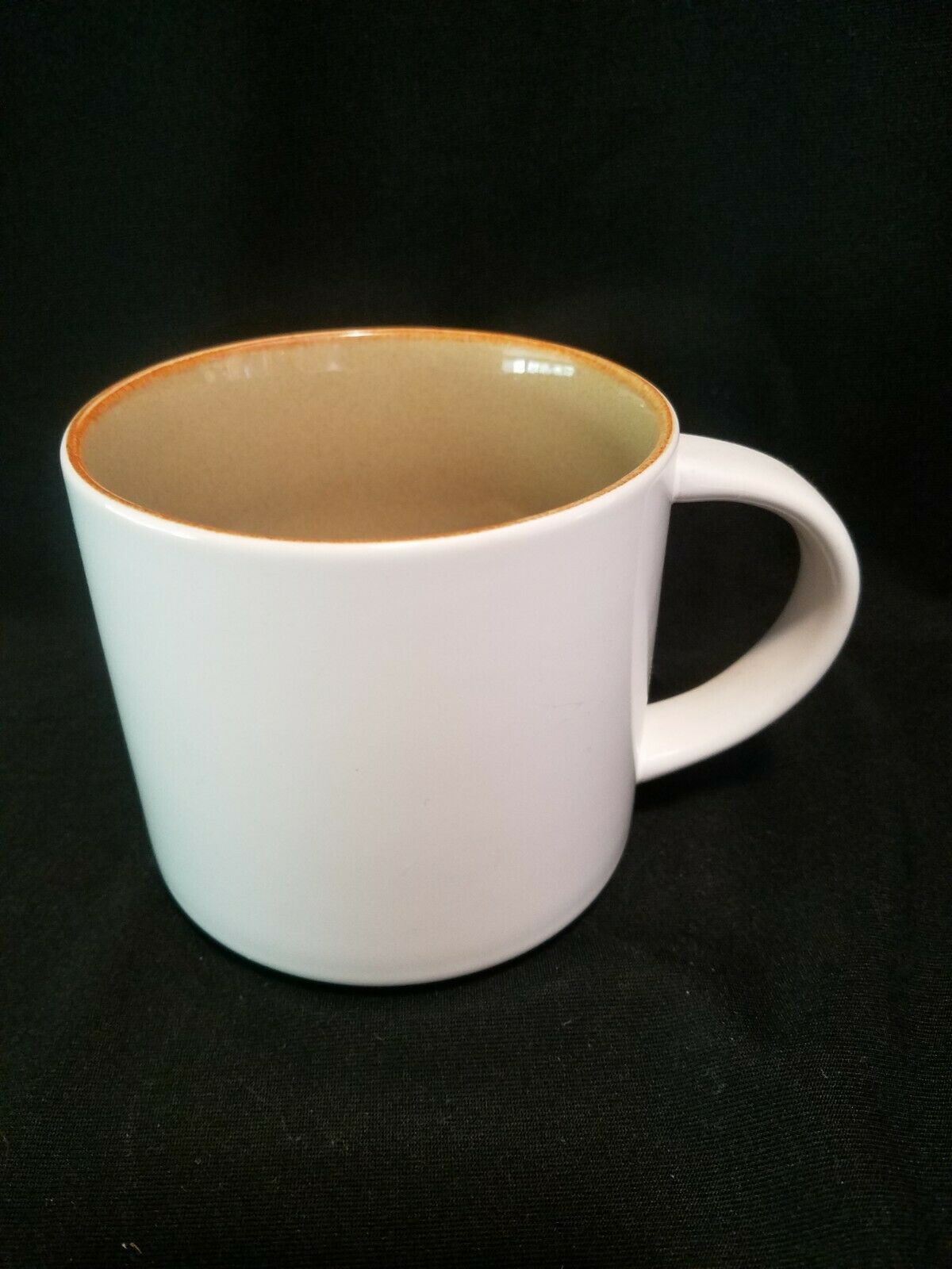 2013 Starbucks Stackable Embossed Coffee Mug Ivory w/ Brown Interior 14 oz