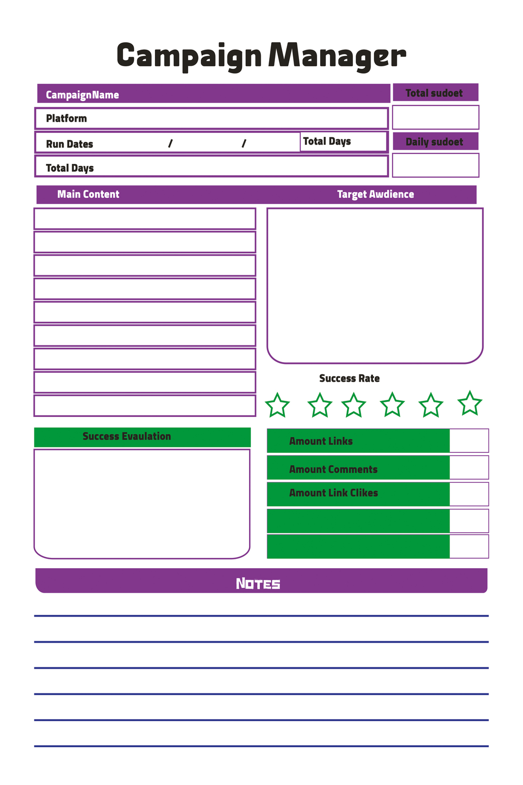 CAMPAIGN MANAGER, Social Media Influencer, PRINTS, printable, Email Blog Planner