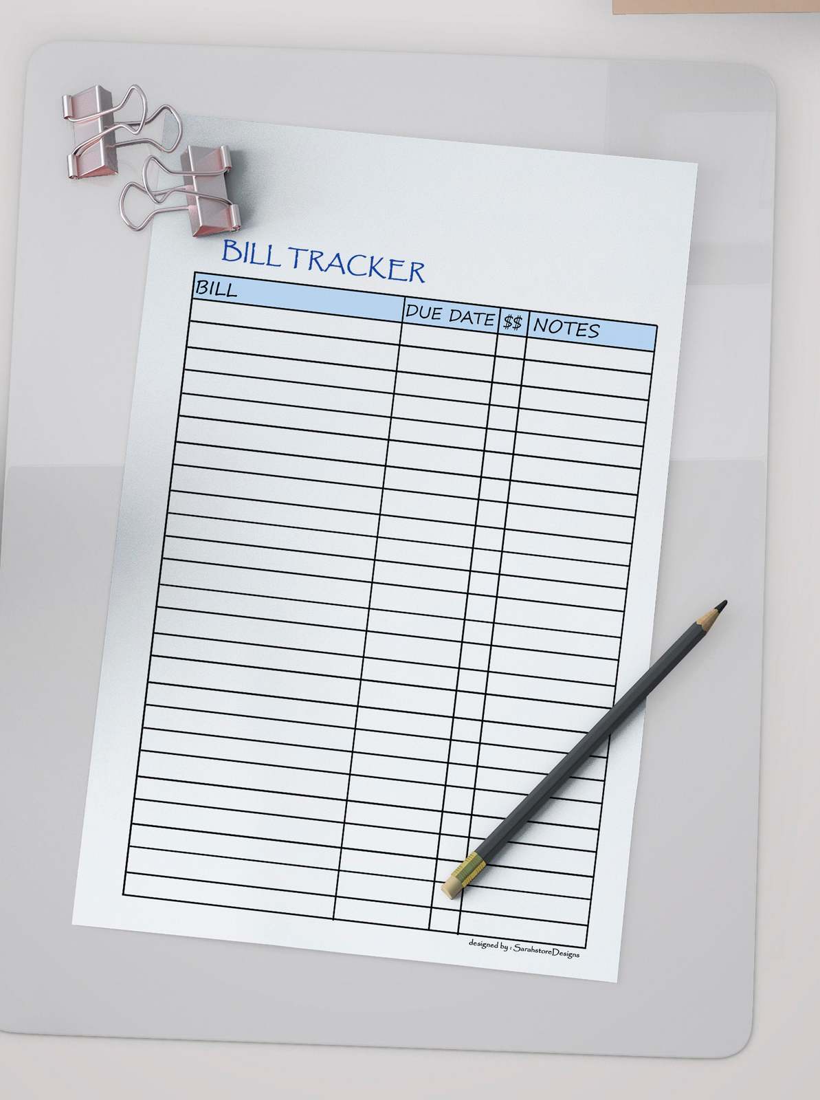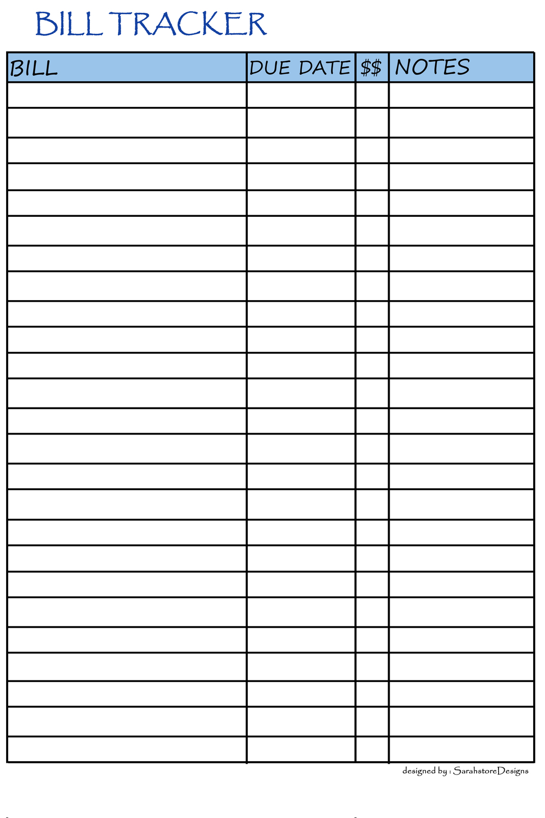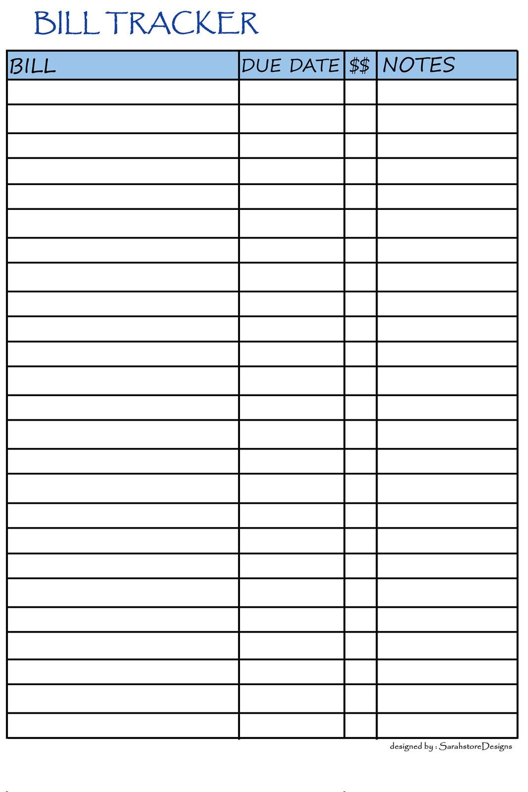 Printable BILL Tracker, day, month, and year and similar items