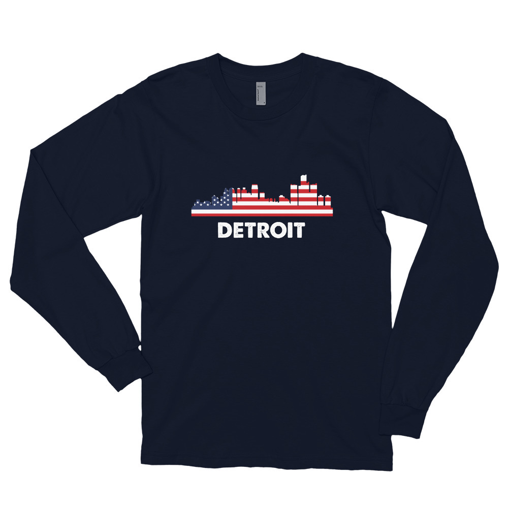 Detroit City American Flag Shirt, 4th of July shirts Long sleeve t-shirt