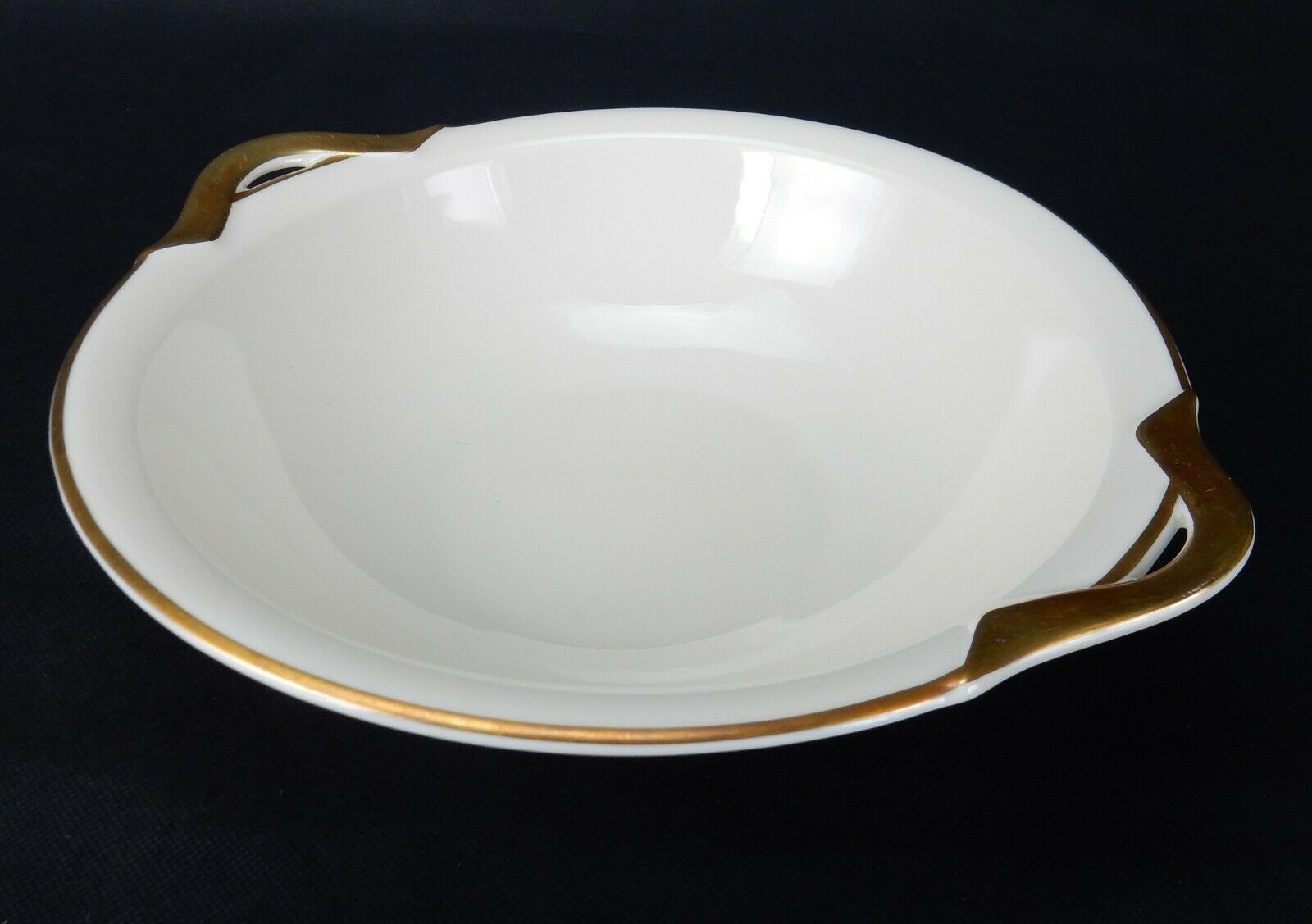 Large Porcelain Serving Bowl, Vintage K A Krautheim Bavaria, Handles, Gold Paint