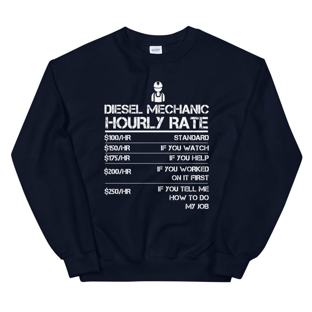 Diesel Mechanic Hourly Rate Gift Shirt For Men Labor Rates Unisex Sweatshirt