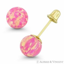 Fiery Royal-Pink Synthetic Opal Ball Screwback Stud Earrings in 14k Yellow Gold