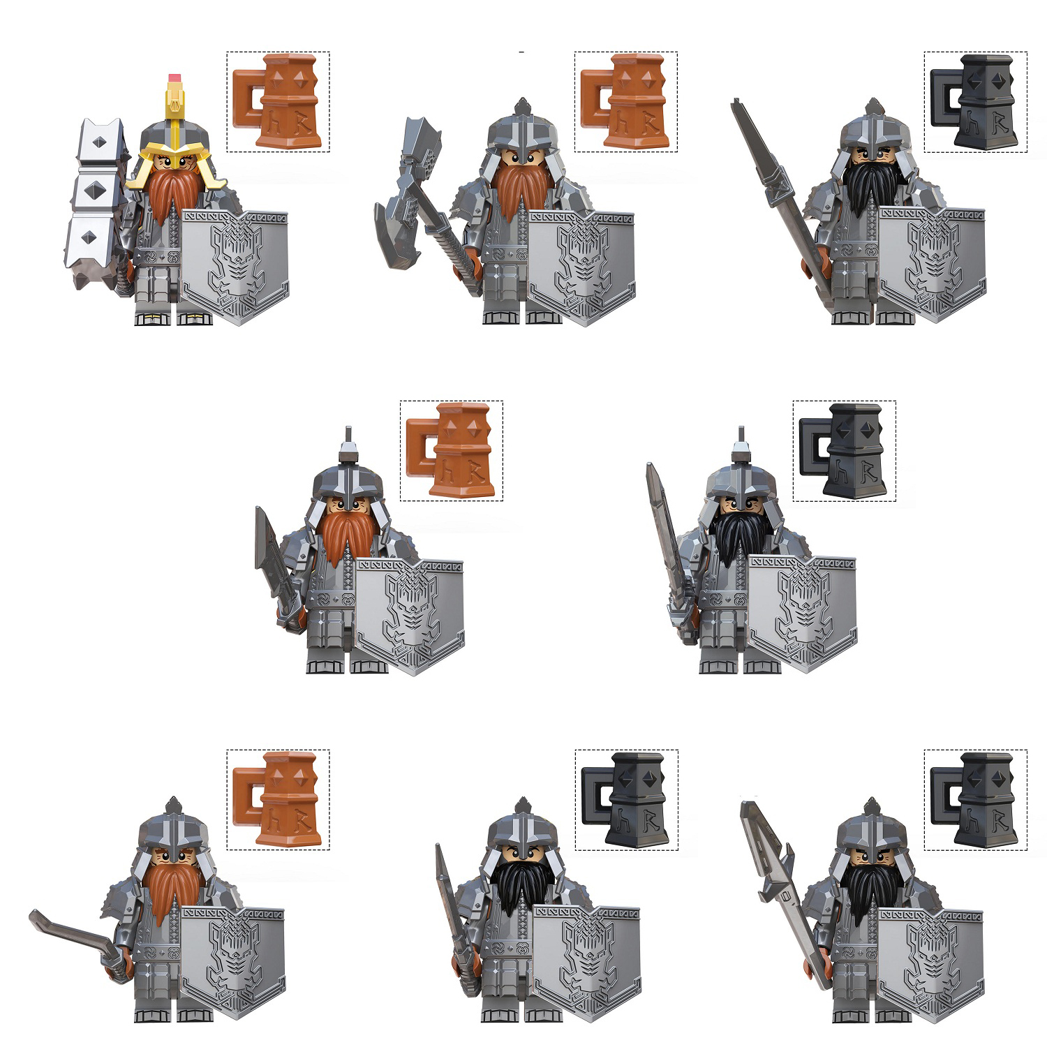 8Pcs The Lord of the Rings Hobbit Dain II Ironfoot Dwarves warriors Minifigures