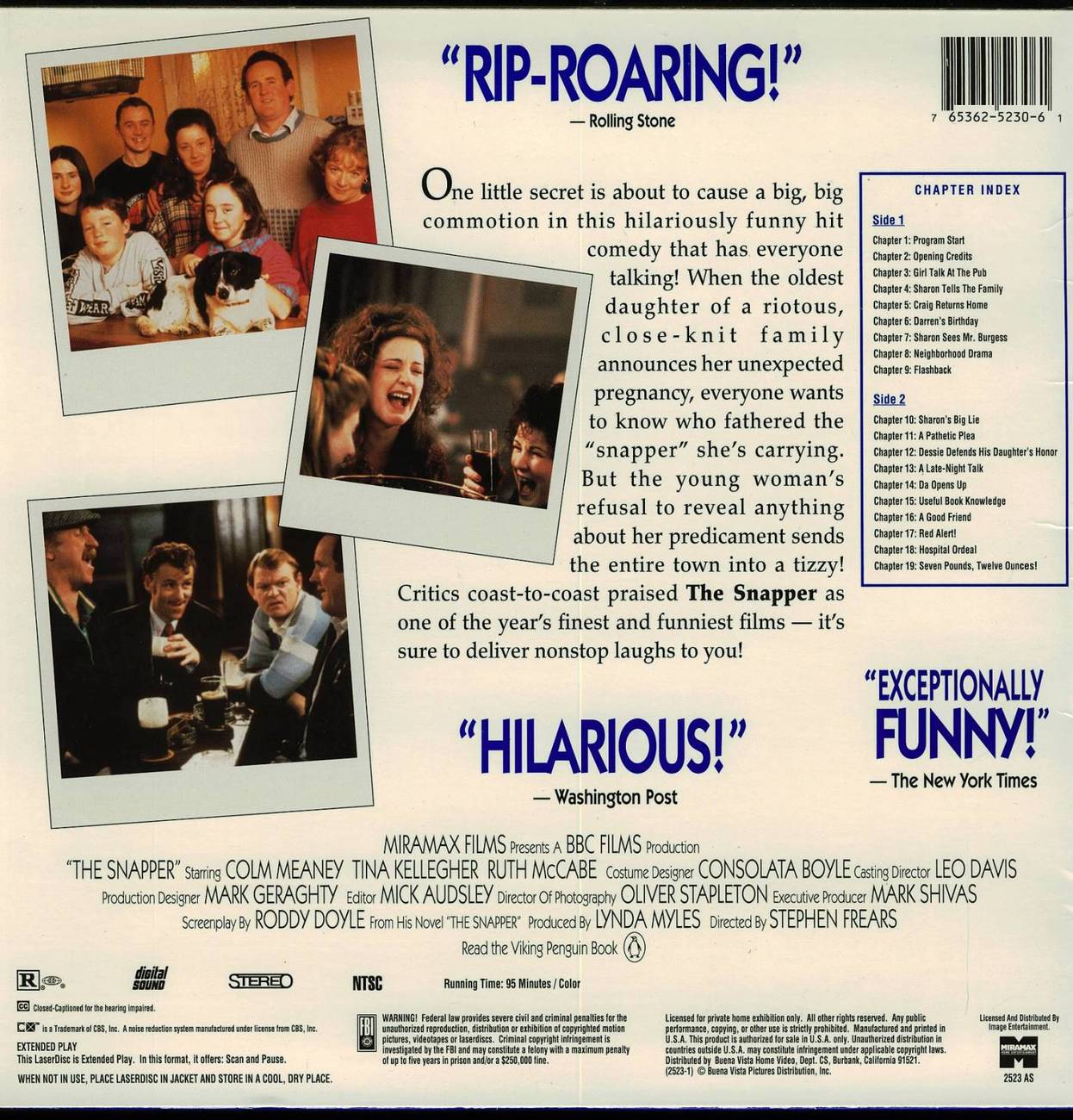 This is a previously viewed LASERDISC of the rare comedy classic THE SNAPPER staring: