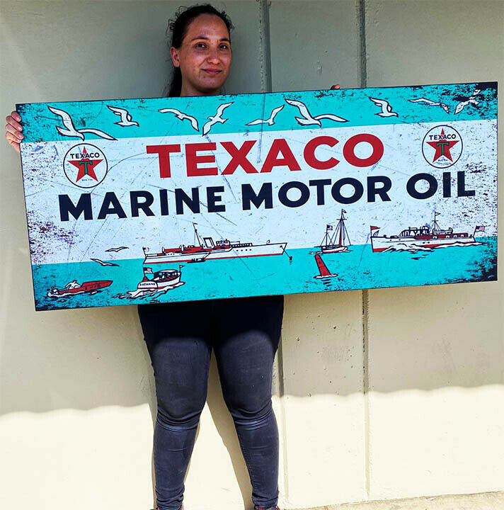 Texaco Marine advertising metal sign measures 54" wide by 23" tall