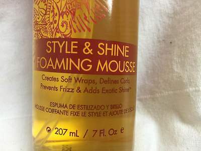 Creme of Nature with Argan Oil Style Shine Foaming Mousse is a uniquely formulated mousse that is perfect for styling natural and relaxed hair. This nourishing formula, infused with Argan Oil from Morocco, moisturizes and uniquely nourishes the hair, instantly imparts Exotic Shine while reducing frizz. Great for creating defined natural curls, spiral sets, and full-bodied wraps