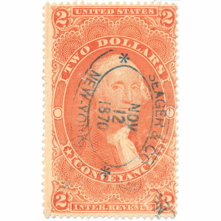 1862-71 $2 U.S. Internal Revenue, George Washington Scott R81d Conveyance, Red