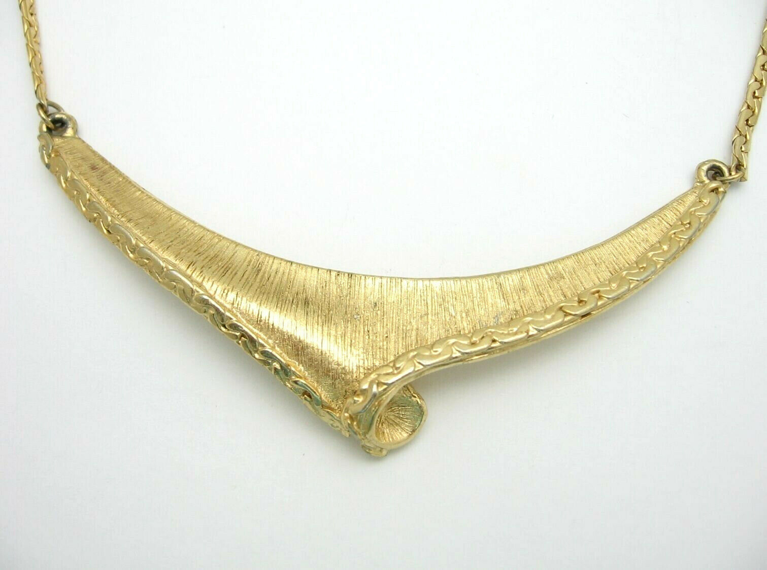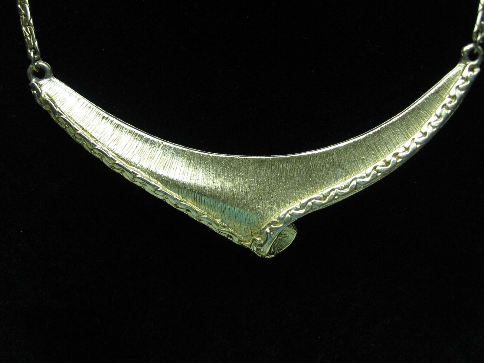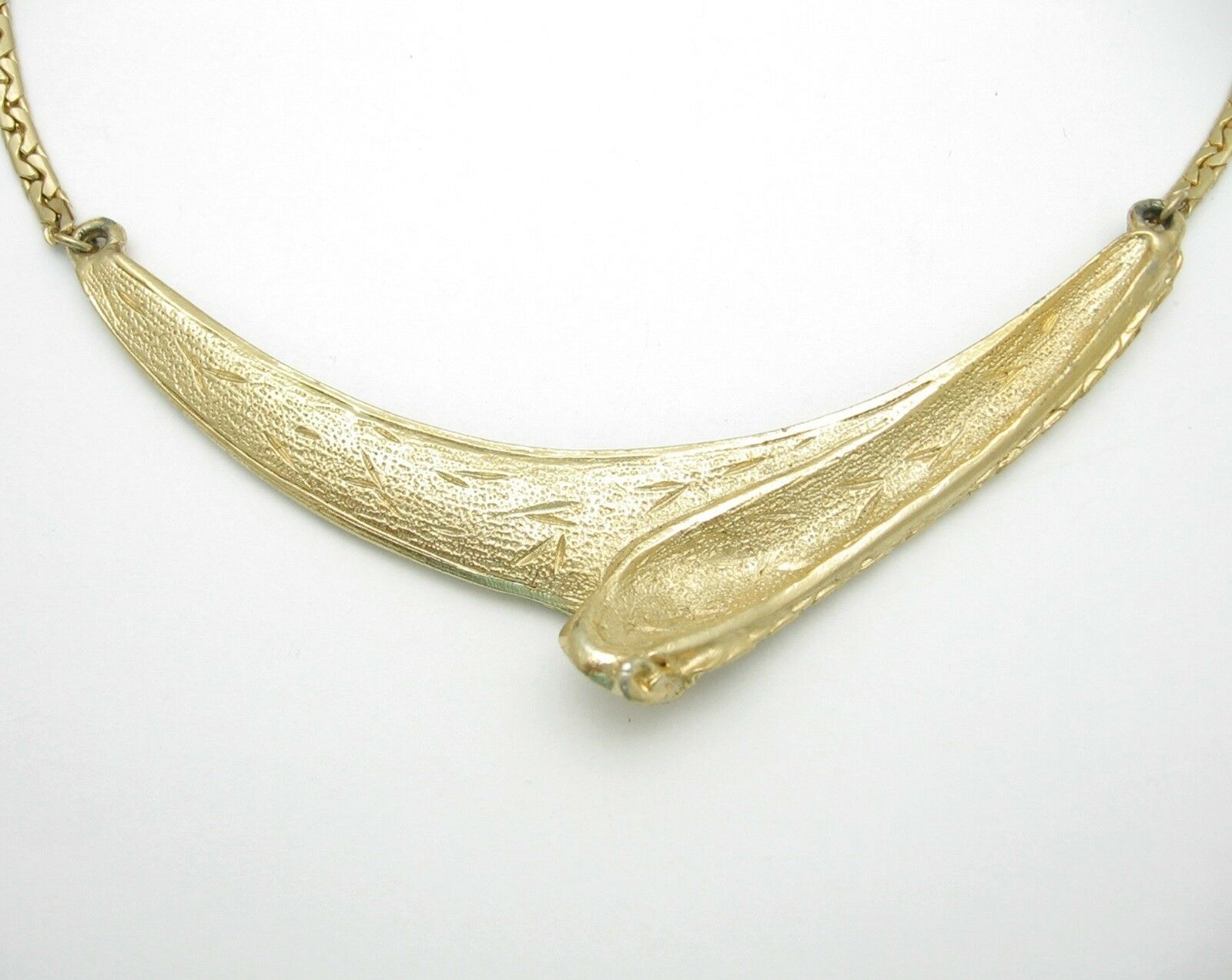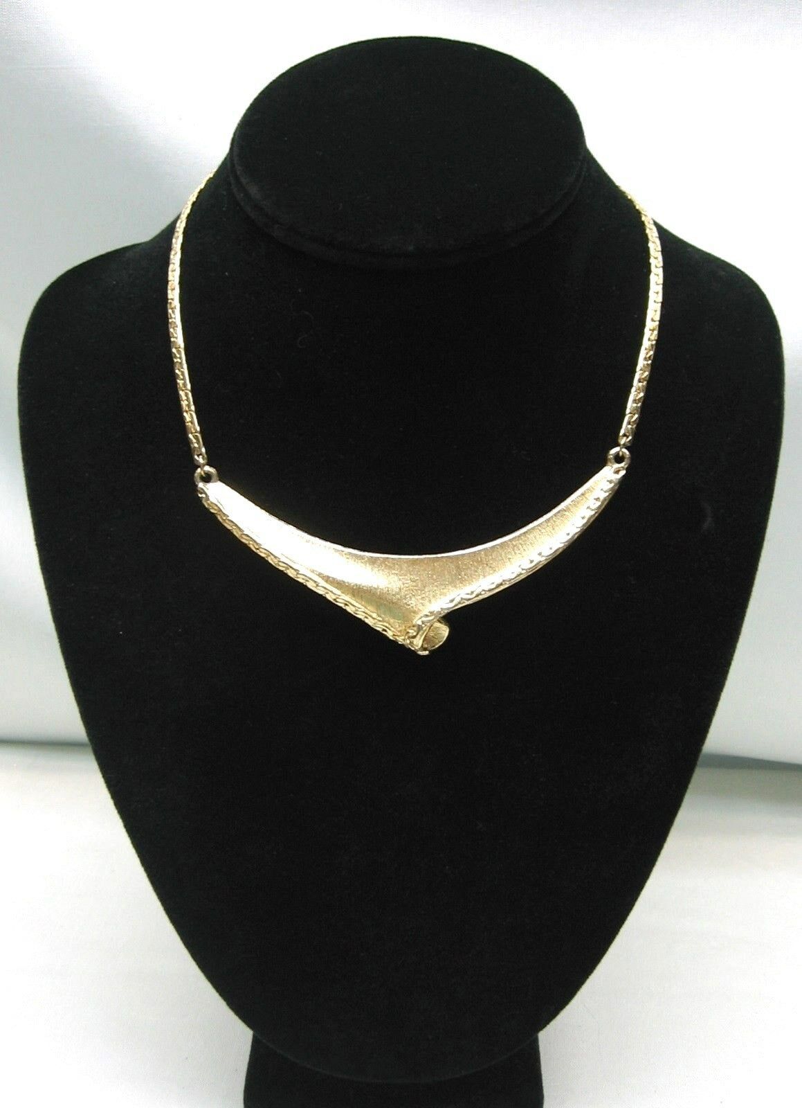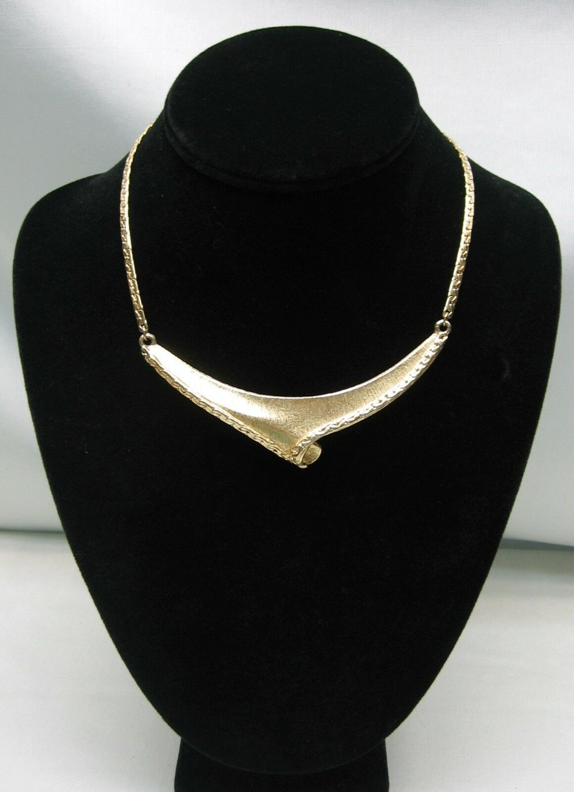 Vintage CHOKER NECKLACE Chain SOLID Angle FRONT PIECE Goldtone Retro Jewelry