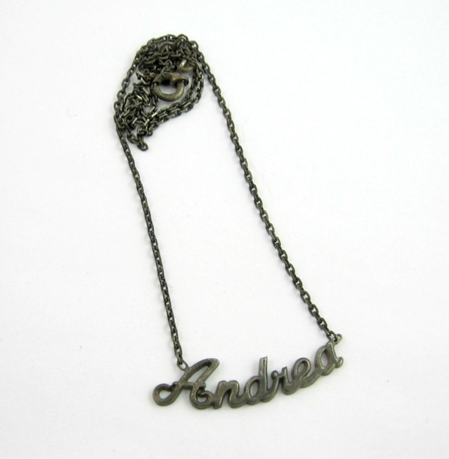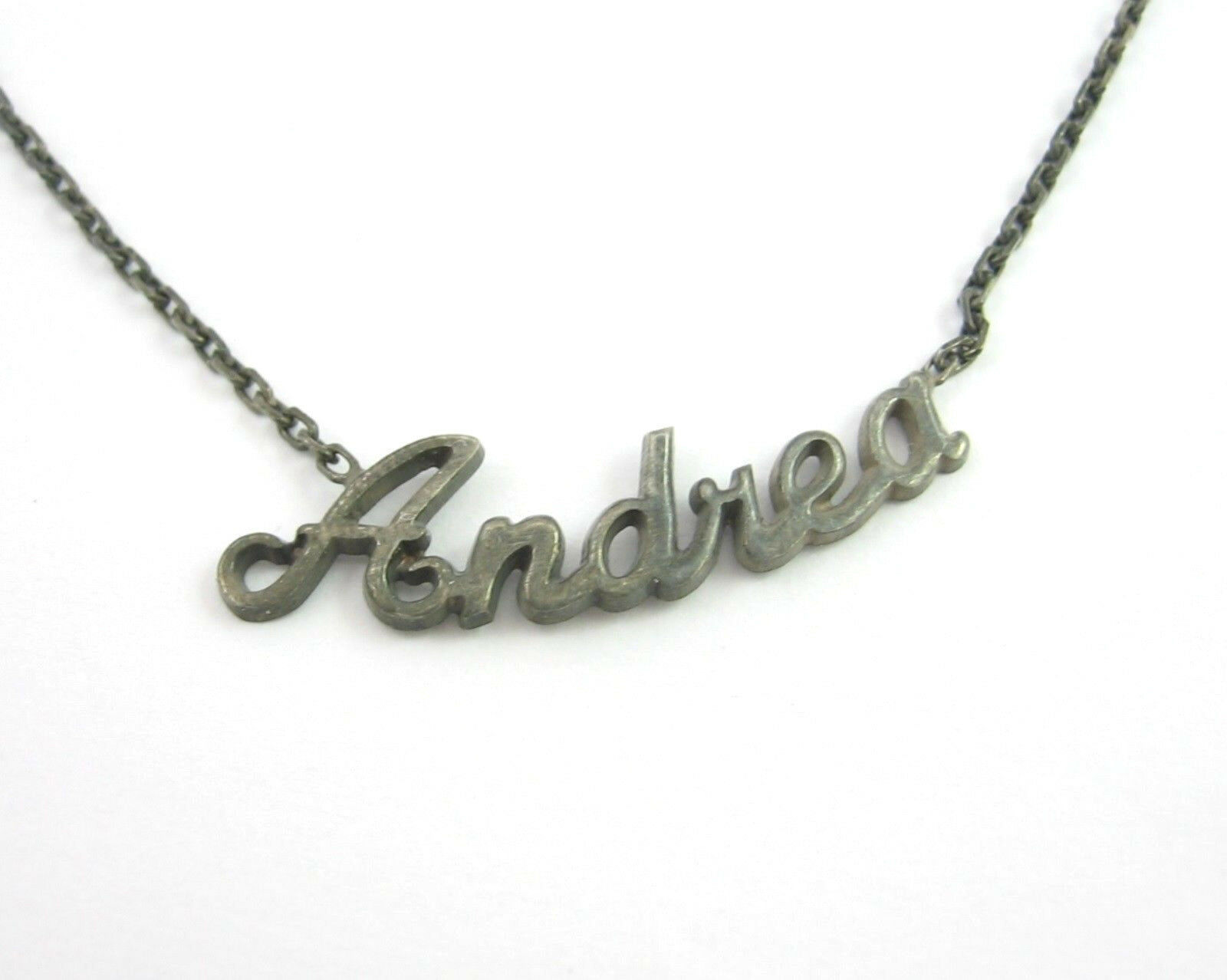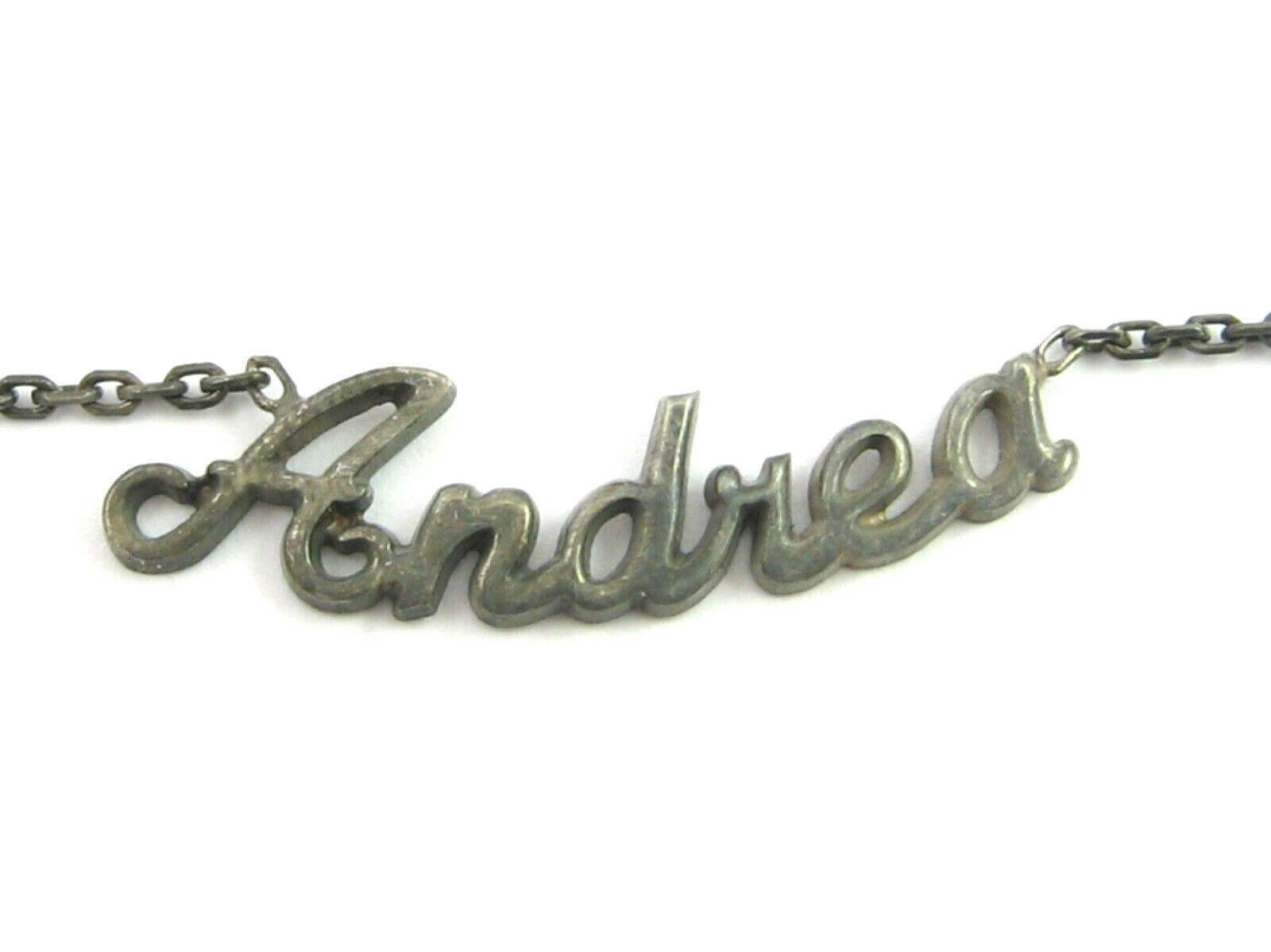 ANDREA Name NECKLACE Vintage Dark Silvertone and 11 similar items