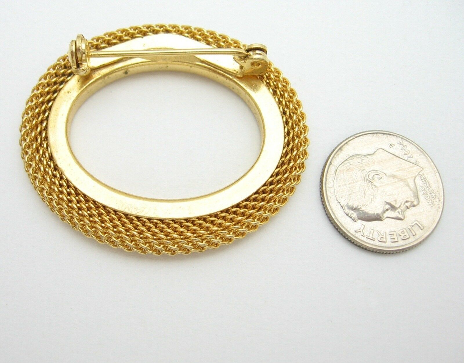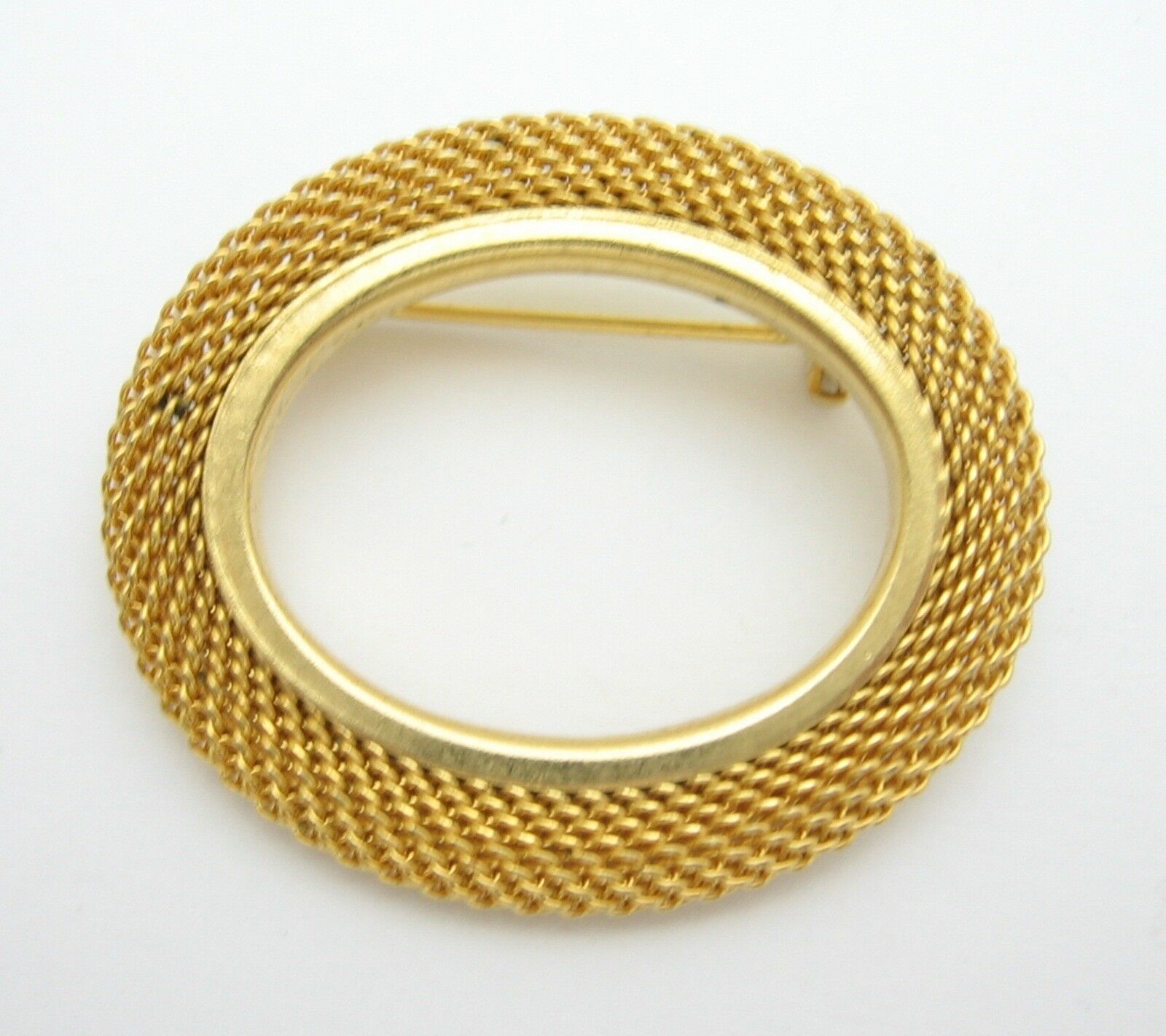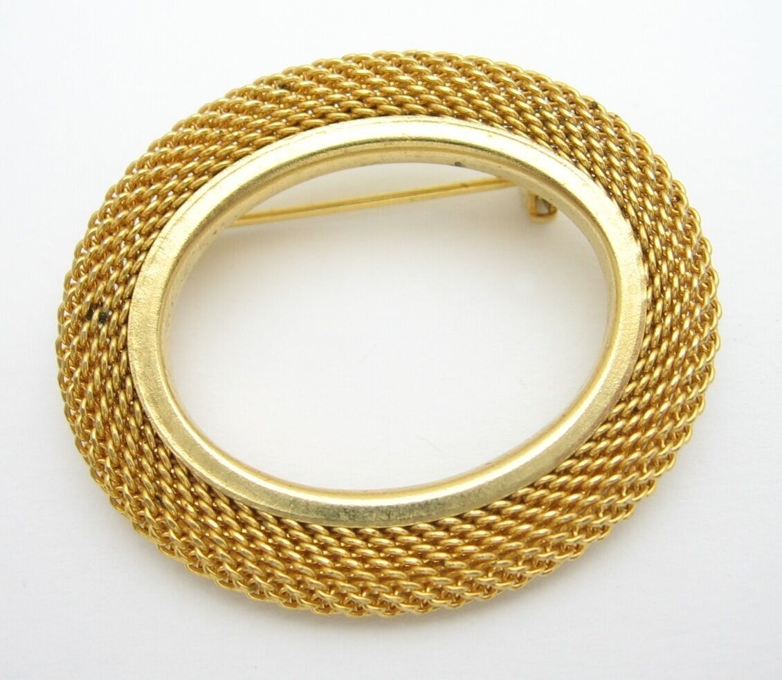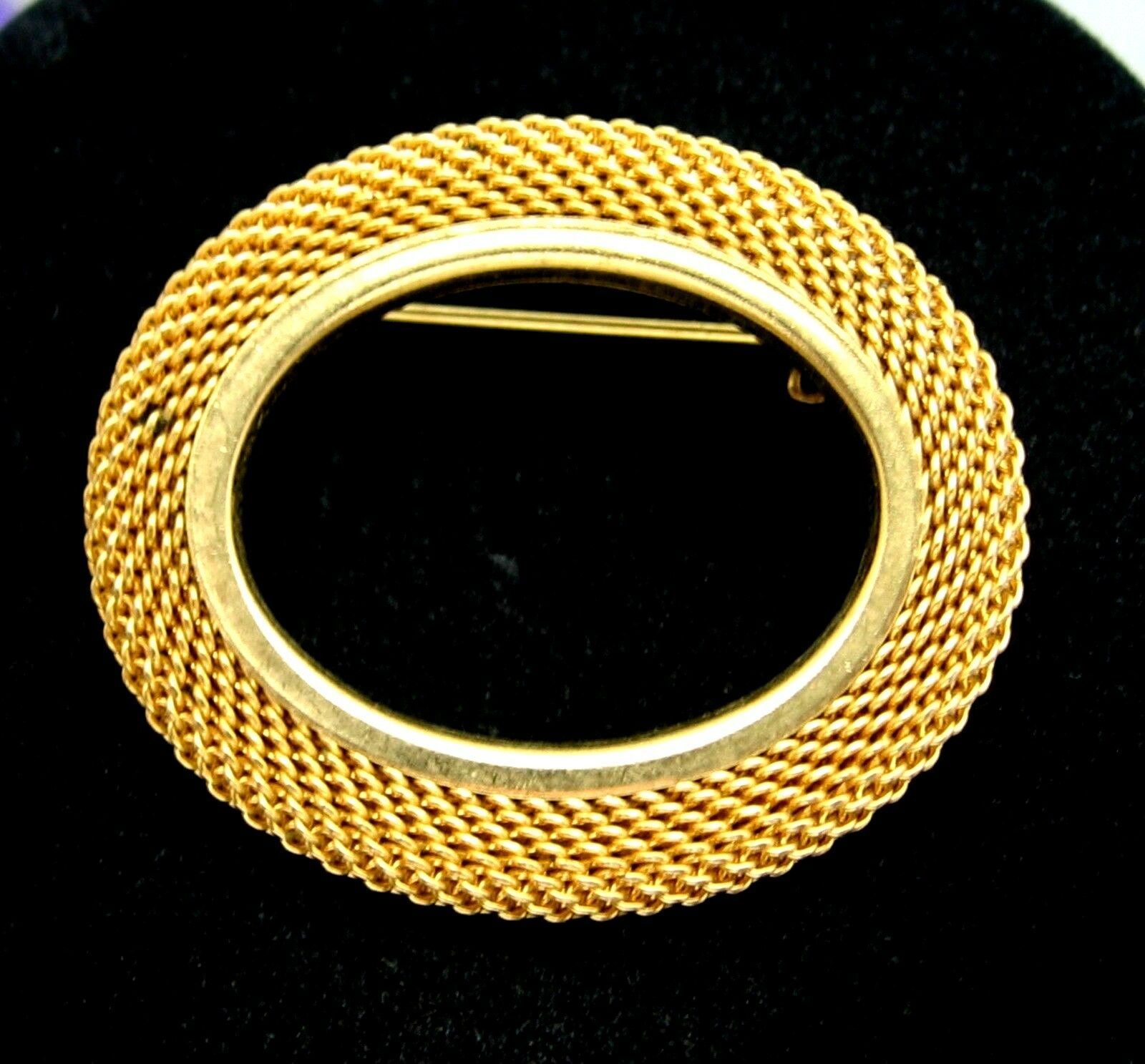 Goldtone METAL MESH BROOCH Vintage OVAL PIN Airy Costume Jewelry Frame