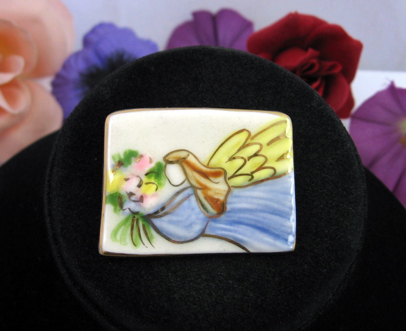 Angel With Flowers Ceramic Brooch Vintage and similar items