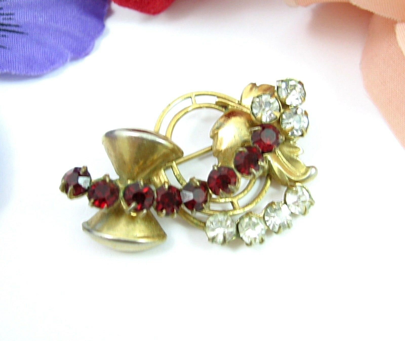 This is a vintage RED and CLEAR RHINESTONE BROOCH!