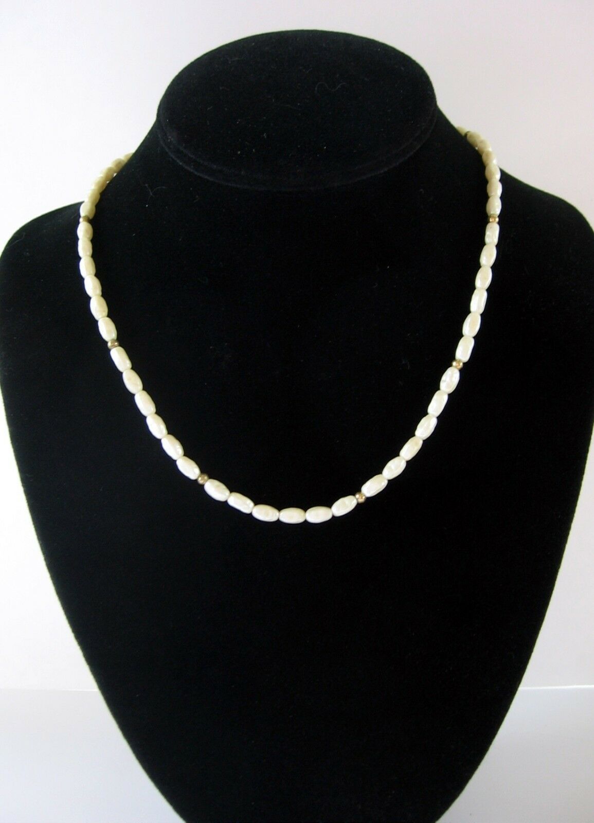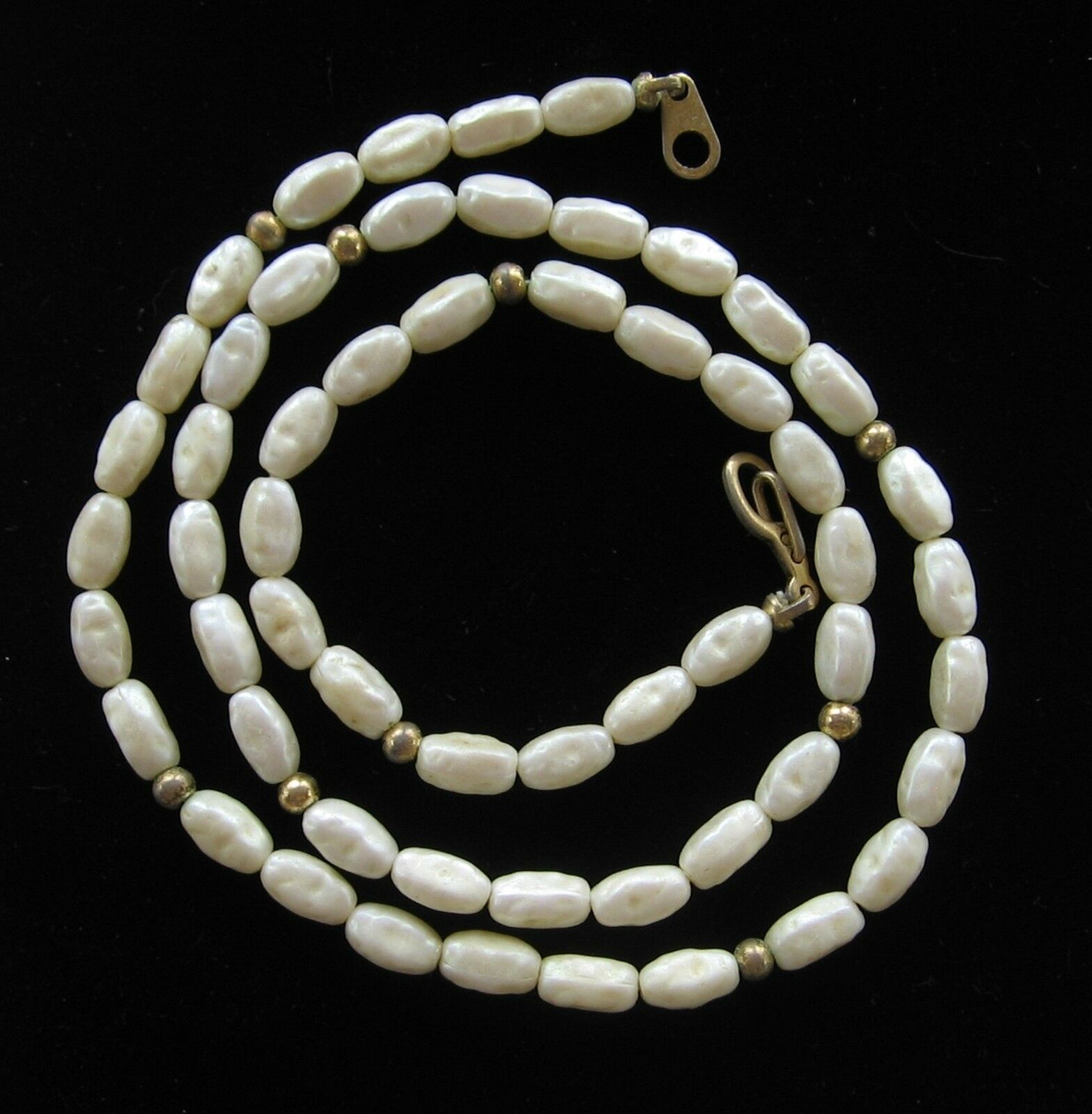 NECKLACE Vintage Fresh Water FAUX PEARLS Imitation Choker Goldtone 18" Glass