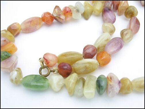 The plastic beads on this necklace were created to look like polished natural or genuine stones! BUT they are made entirely of lightweight plastic!