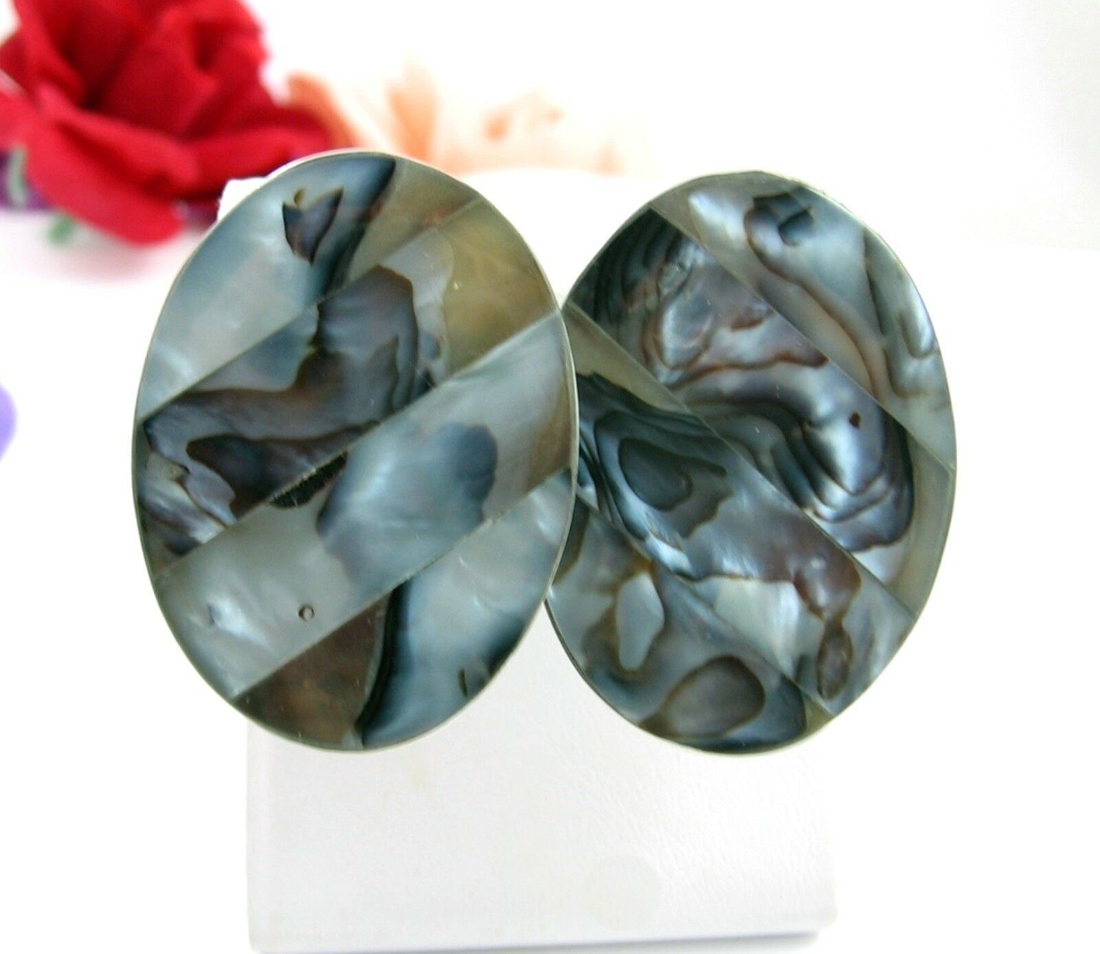 BIG OVAL PAUA Shell Pierced Post Earrings and 10 similar items