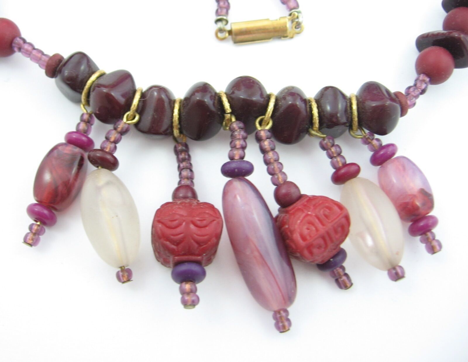 Vintage NECKLACE Shades of PURPLE & DARK RED Dangle BEADS 16" Plastic Light