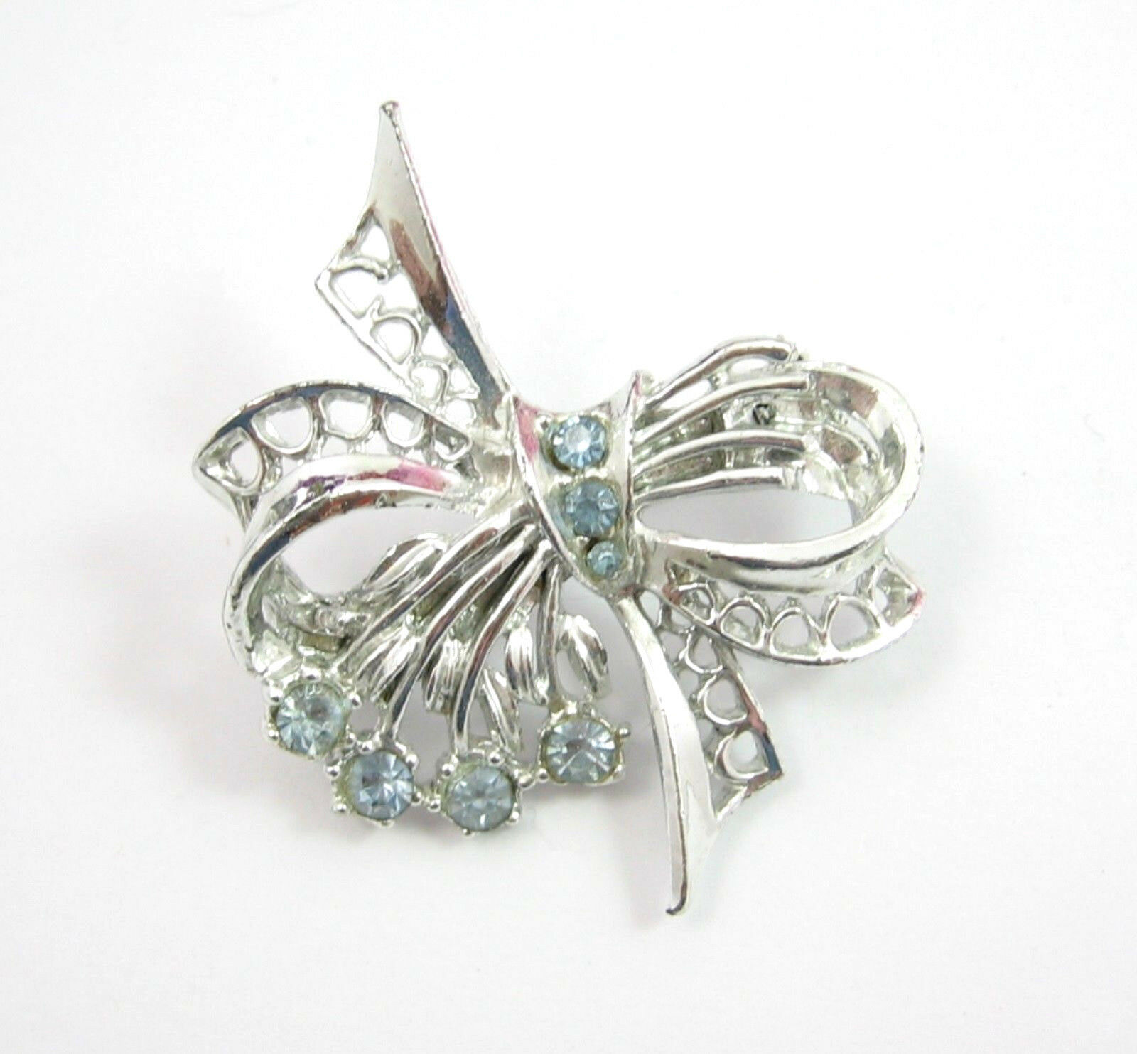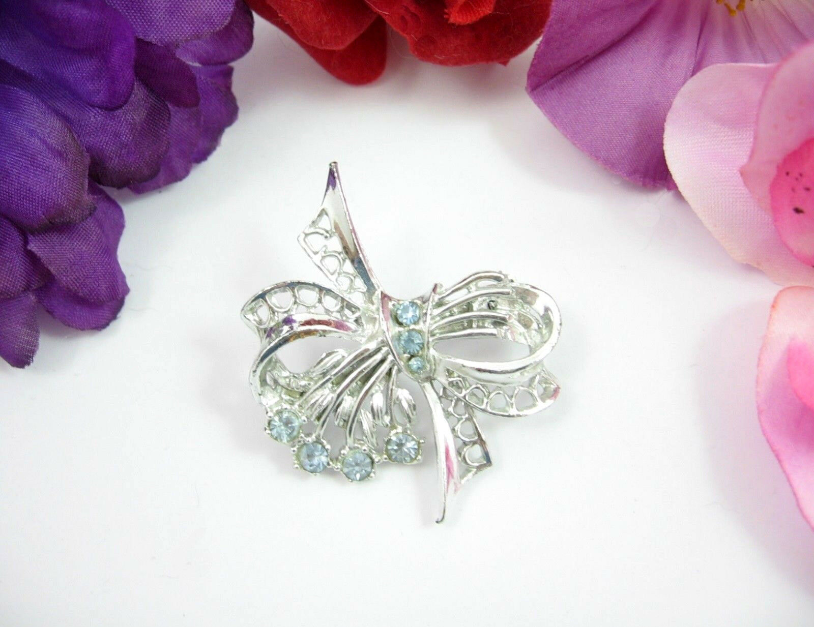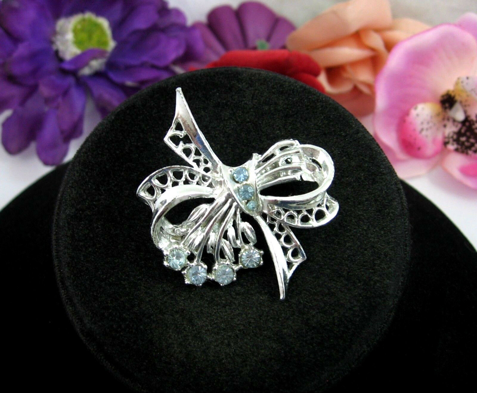 Bow Brooch Vintage Light Blue Rhinestone Pin and 10 similar items