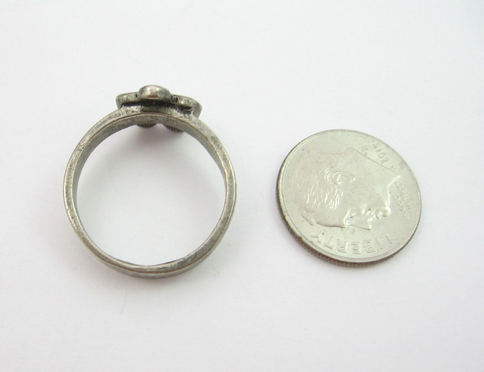 In a silvertone metal, this is a vintage BEST BUDS FLOWER RING!