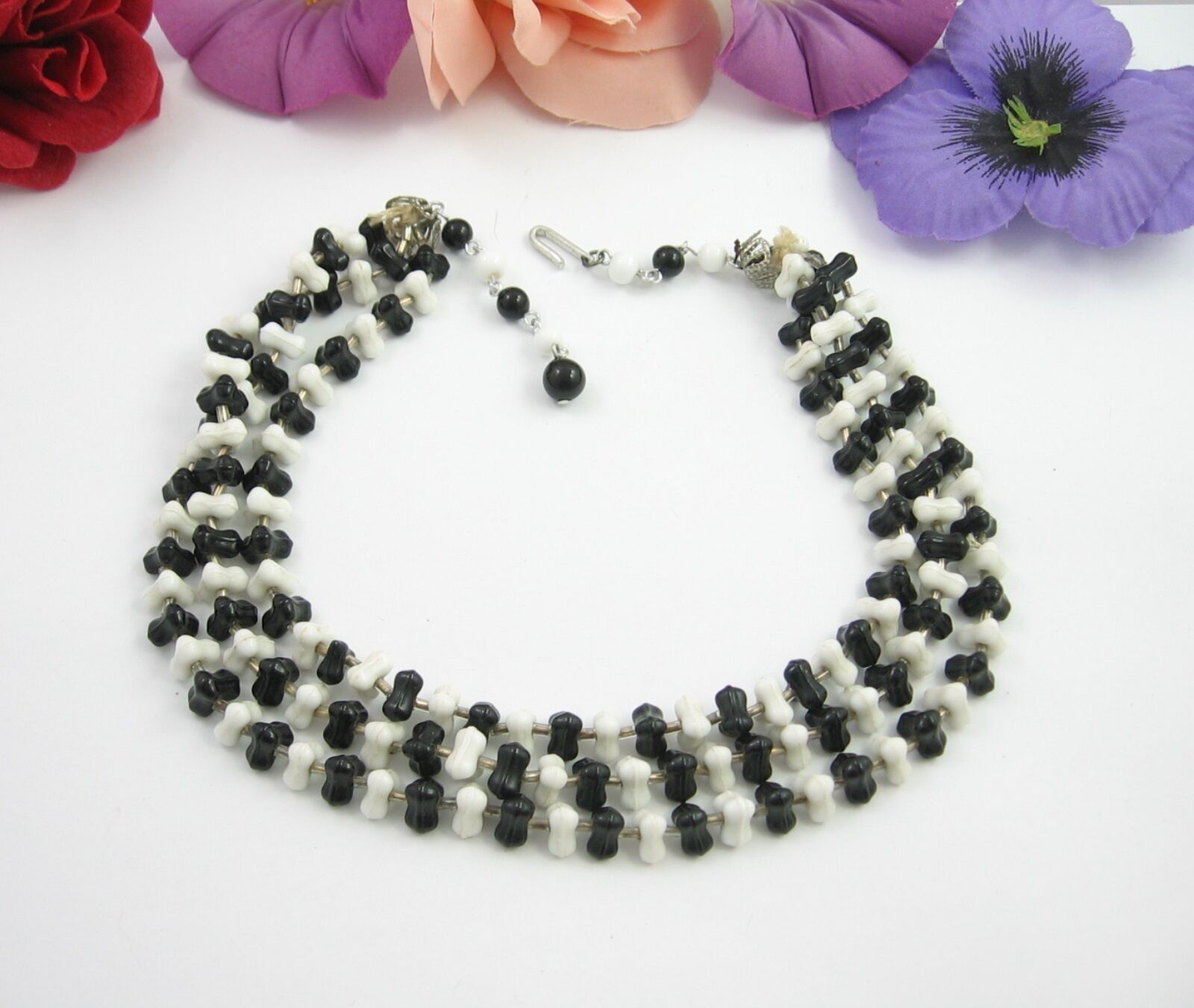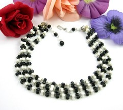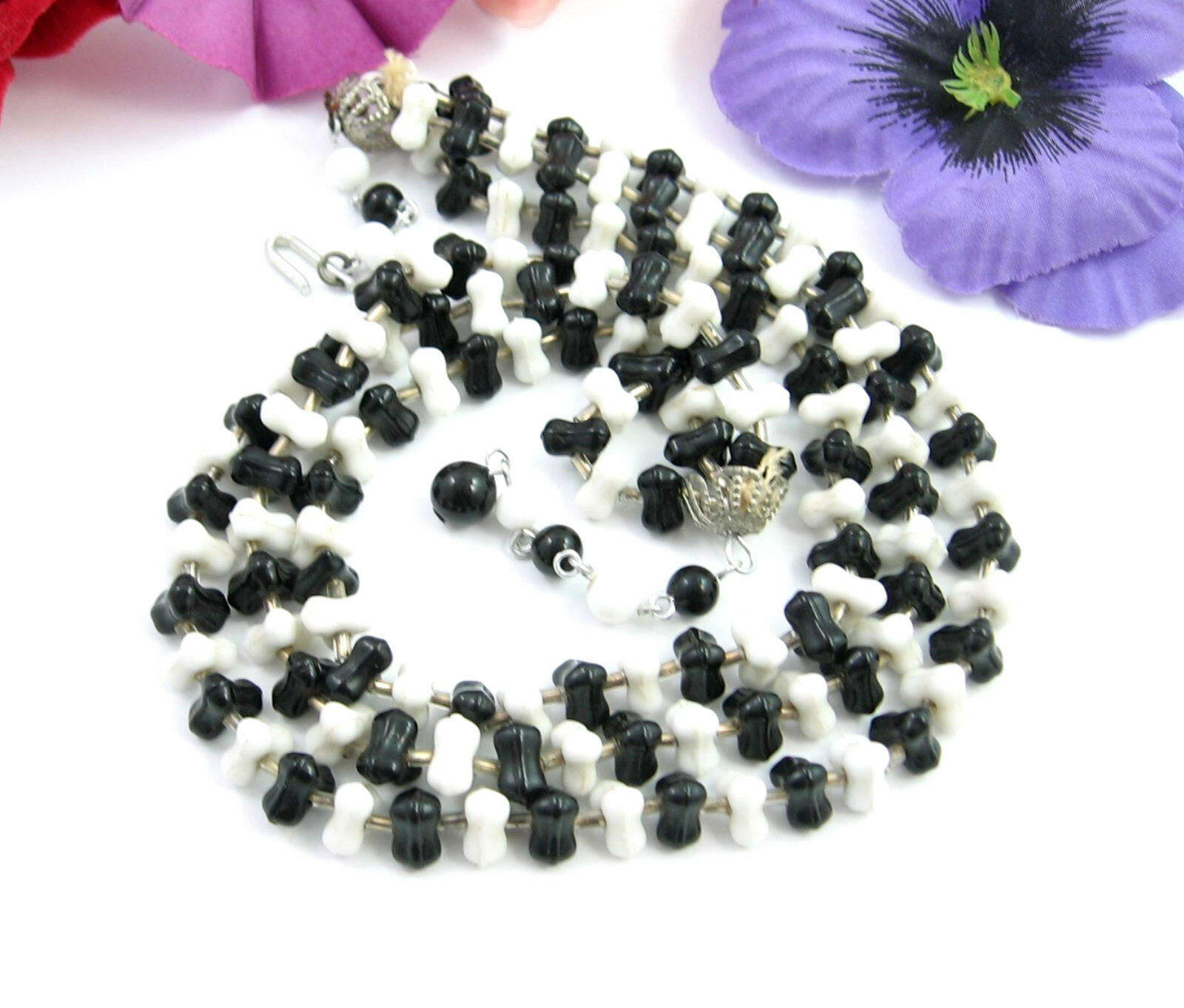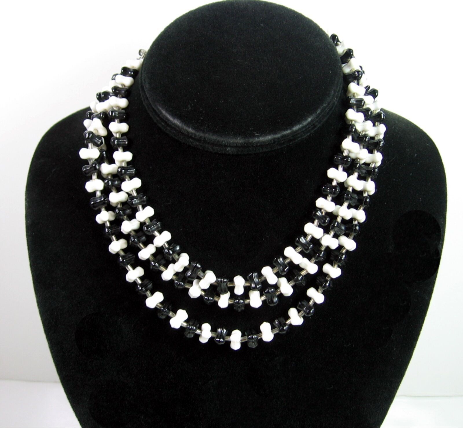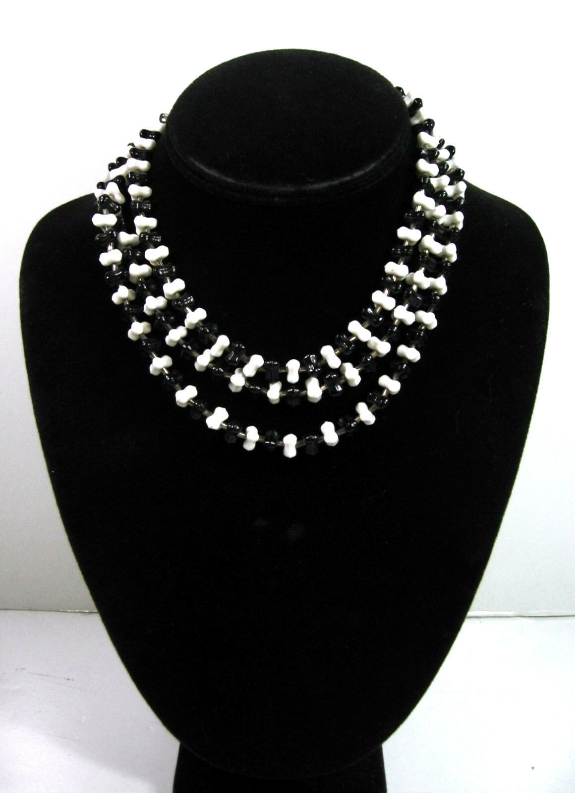 Glass Necklace Vintage Black And White Bead and 50 similar items