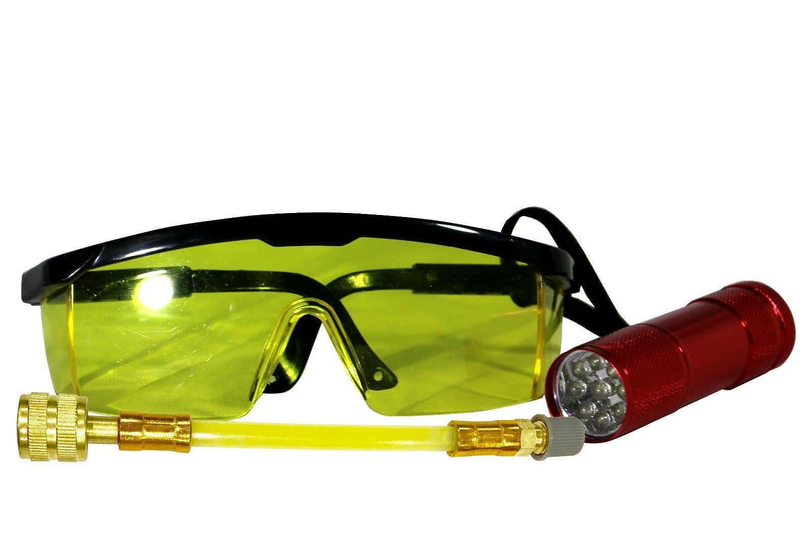 Kit includes: (1) each Enviro-Safe ProSeal XL4 Inject with Dye for use in systems 1.5-5 ton, (1) pair of UV glasses and (1) 9 LED bulb black light in either blue or red.