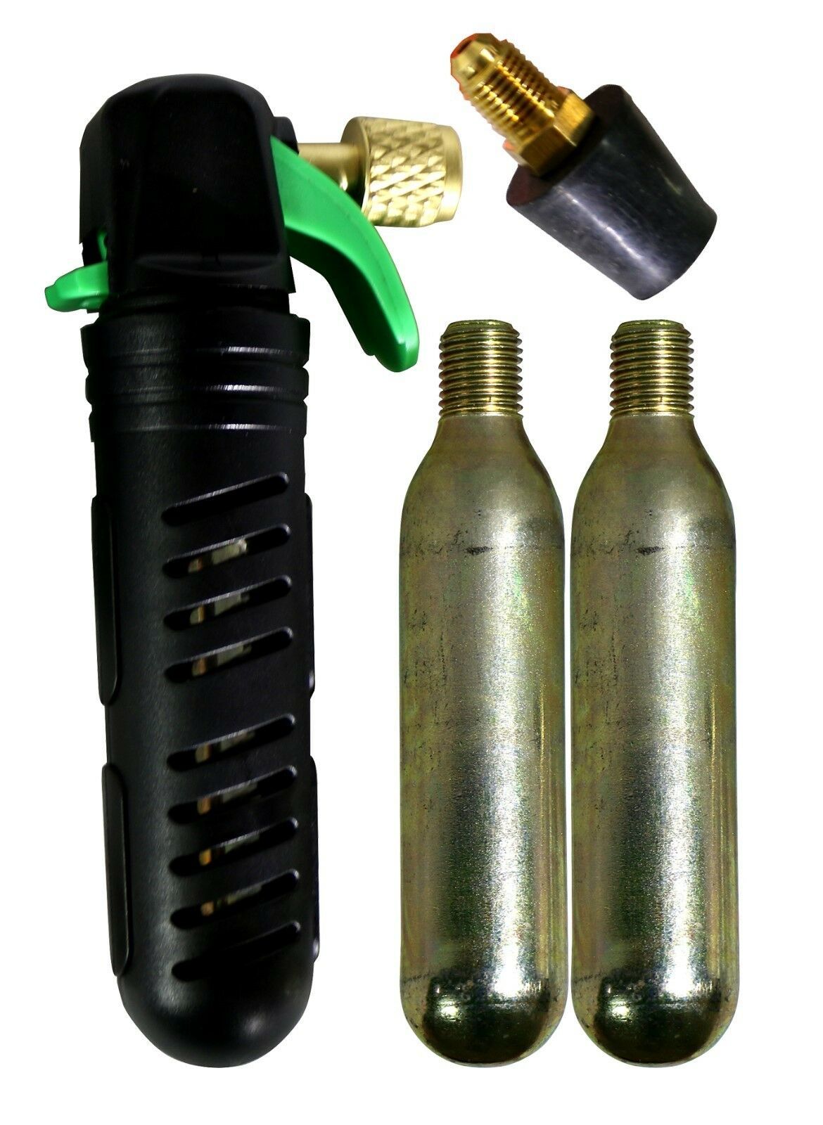 Kit includes: (1) each CO2 gun, (2) each CO2 cartridges, (1) each Condensate adapter.