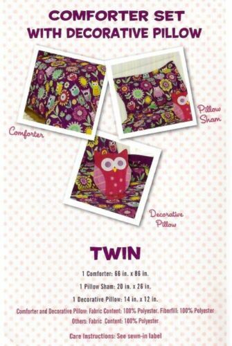 OWLS HAPPY TEENS-KIDS GIRLS COMFORTER SET 3PCS TWIN SIZE