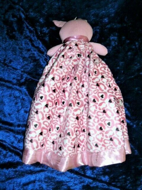Cocalo Bunny Rabbit Security Blanket Lovey Black Pink Heart Satin Leopard Cat